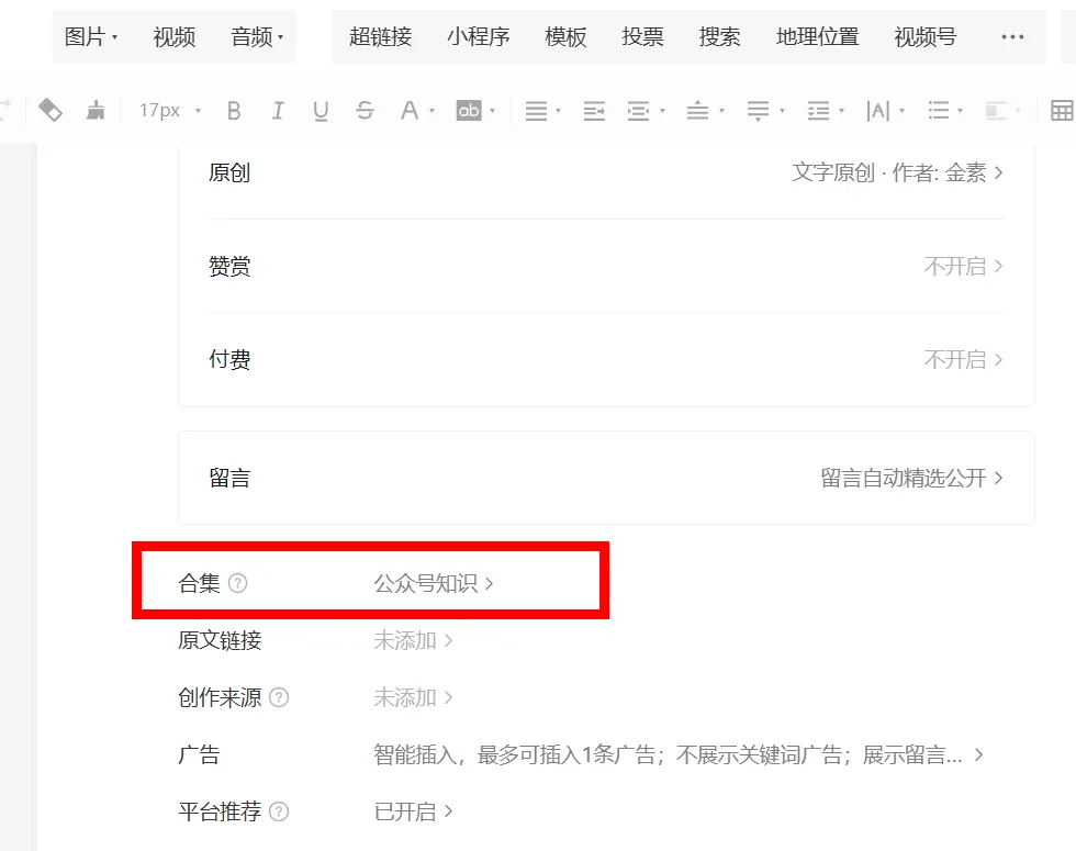 看到很多朋友,公众号下面有一个合集,今天专门去后台学习了一下,方法分享给大家,一起来学习: