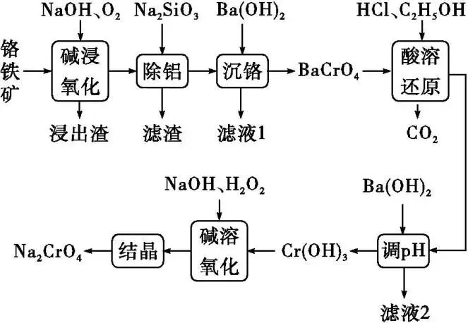 ①“碱浸氧化”时,FeO·Cr2O3转化为Fe2O3和Na2CrO4,该反应中氧化剂和还原剂的物质的量之比为。