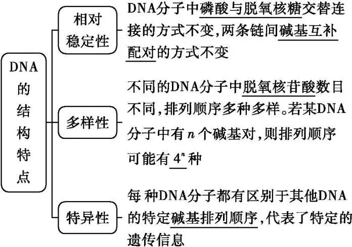 ①DNA由两条脱氧核苷酸链组成,这两条链按反向平行的方式盘旋成双螺旋结构。