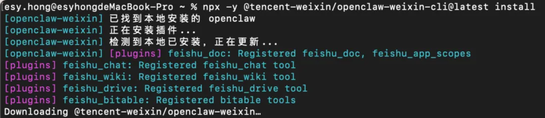 当你看到终端显示【正在安装插件】就已经成功一半了,等待安装完成即可。