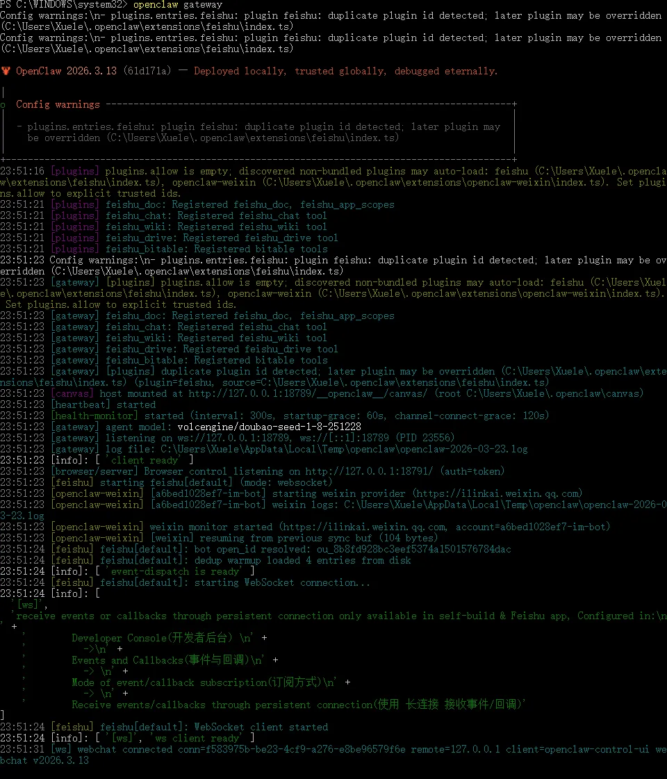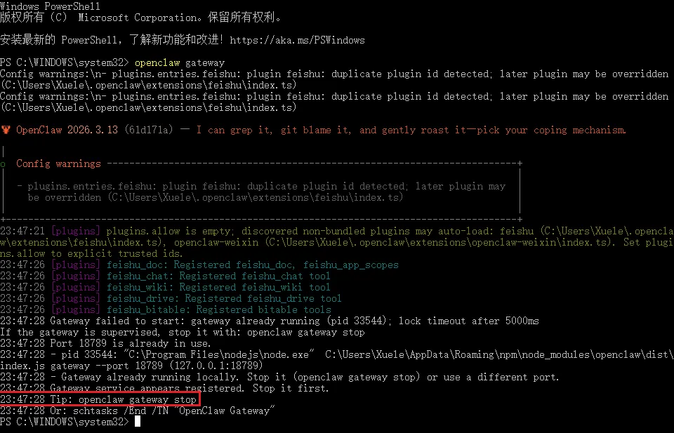 然后,再次输入以下指令并回车(启动 OpenClaw)