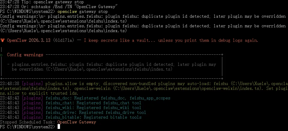 输入以下指令并回车(停止 OpenClaw)