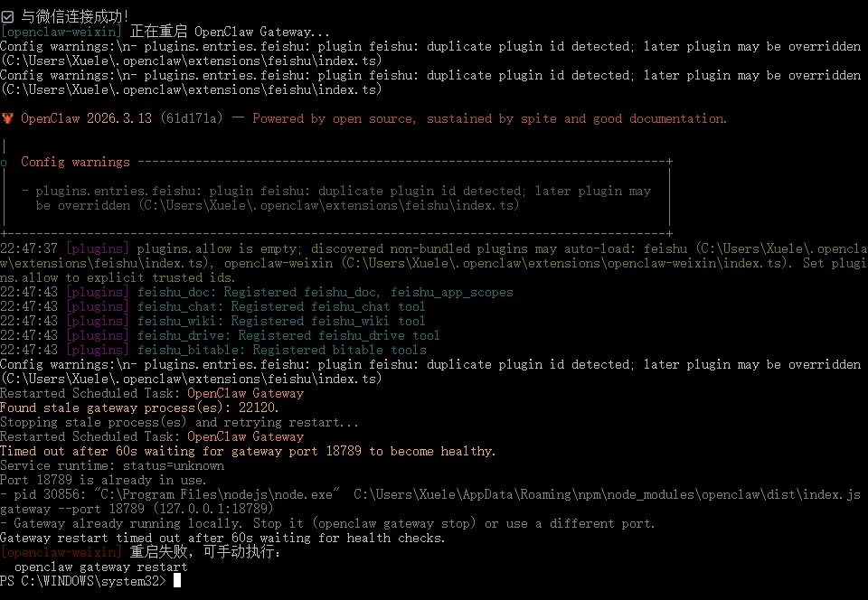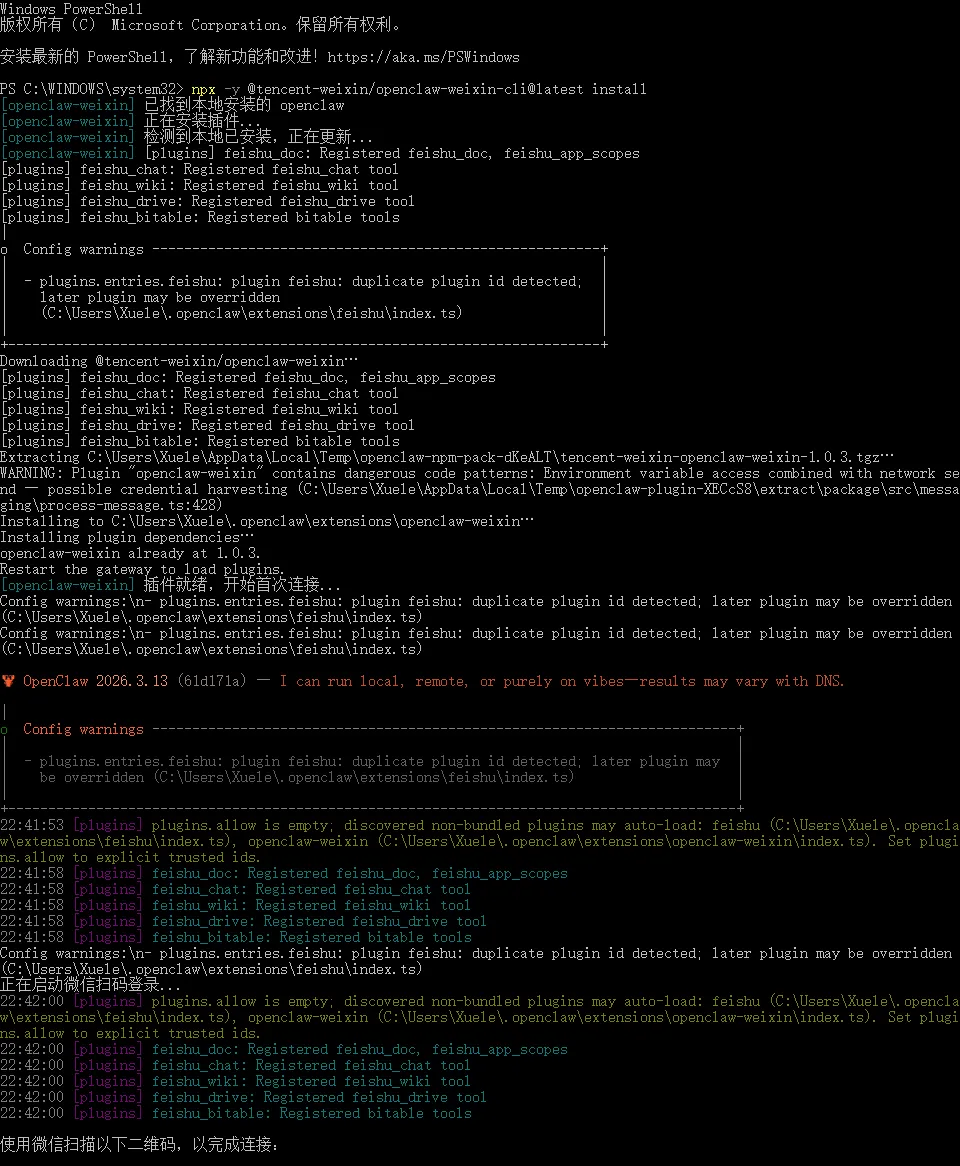 如上图所说:在运行 OpenClaw 的设备安装插件,并开始与微信连接。因此,需要先把 OpenClaw 安装好,在《Windows 本地部署龙虾 OpenClaw 并连接飞书:从零开始的手把手教学,小白也能看懂》这篇文章中有详细说明,可以照着操作即可。