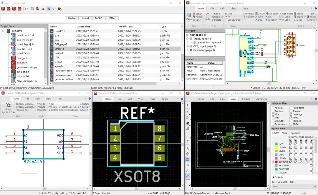 同时可以支持跨操作系统平台的EDA工具。包括元件建库,布局布线,铜箔处理,DRC检测,Gerber数据输出等PCB设计流程功能,完全支持行业内PCB电路设计。