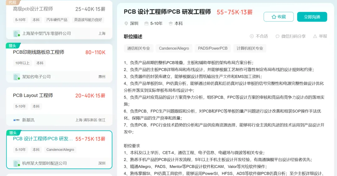目前,国内EDA工程师使用较多的PCB设计软件主要以Cadence Allegro、PADS、Mentor、AD和CR8000,在BOSS直聘APP的中可以看到多是使用Cadence Allegro和PADS的需求。