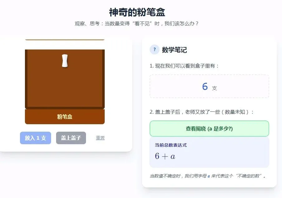 根据俞正强老师讲的《用字母表示数》设计,让学生认识字母表示数的本质:字母表示未知数。