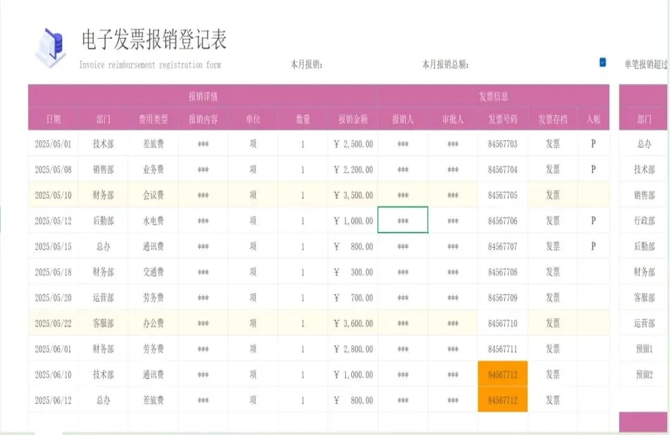 6. 电子发票报销智能登记表