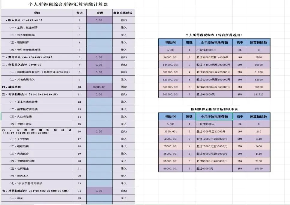 7. 个人所得税综合所得汇算清缴计算器