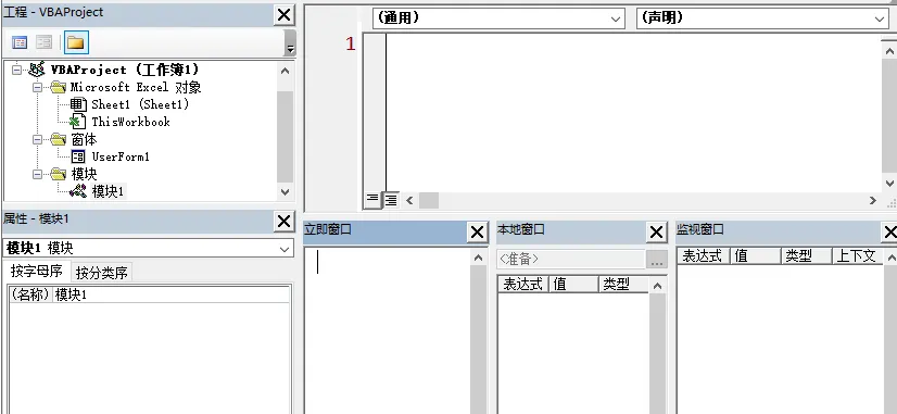 VBE 编辑器界面由多个窗格组成,初次打开可能感觉陌生,下面逐一介绍。