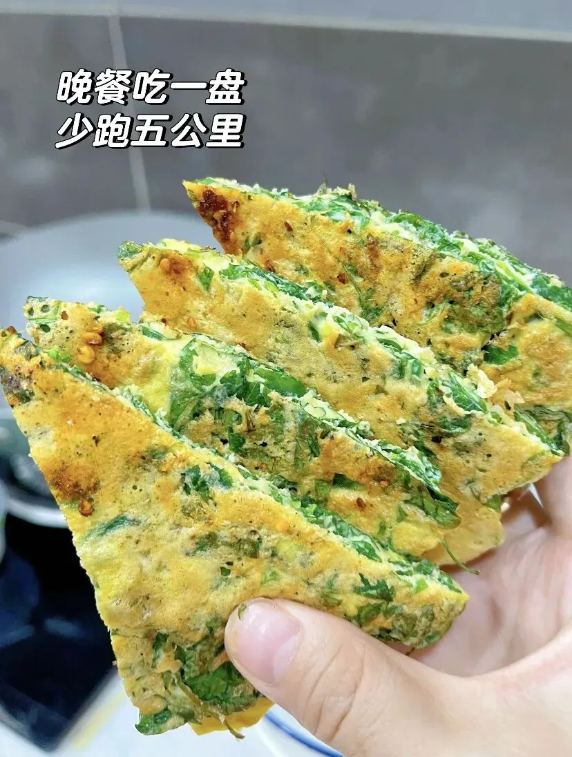 这个版本在基础蛋饼里加了一把虾皮,煎出来表面酥脆,里面软嫩,虾皮的鲜味和香椿的香味融合在一起,越嚼越香。香椿能升阳理气,虾皮性温,有补肾壮阳、开胃化痰的作用,这个搭配特别适合春天容易疲劳、手脚有点凉的人。给小朋友吃,虾皮还能补钙,一口下去,营养和美味都有了。