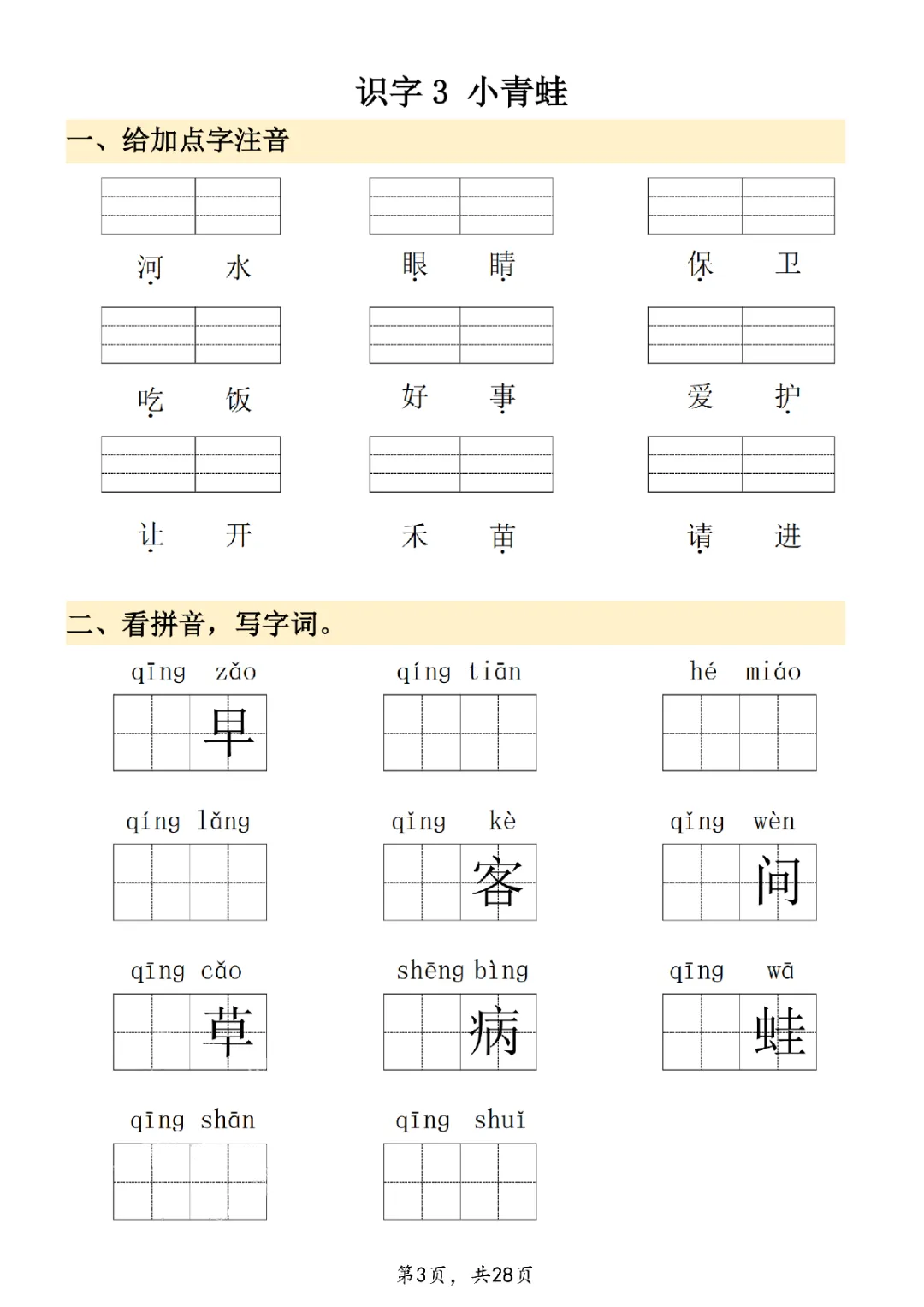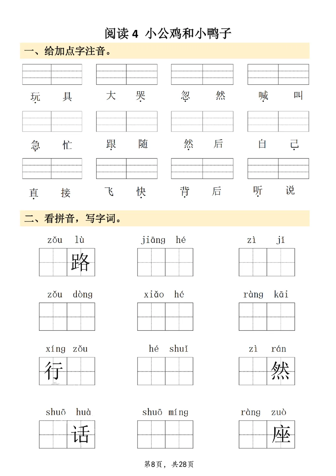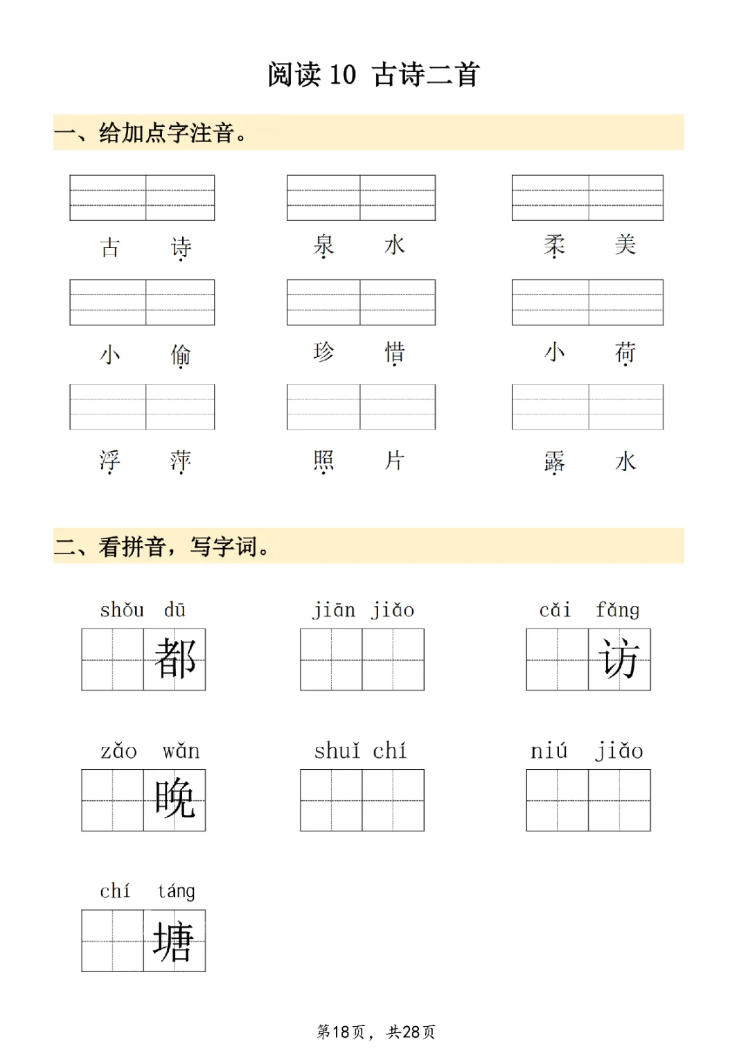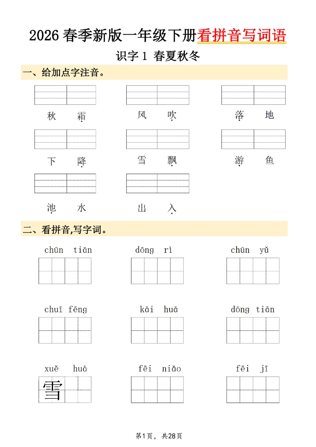 2026年一年级下册语文看拼音写词语|电子版可打印