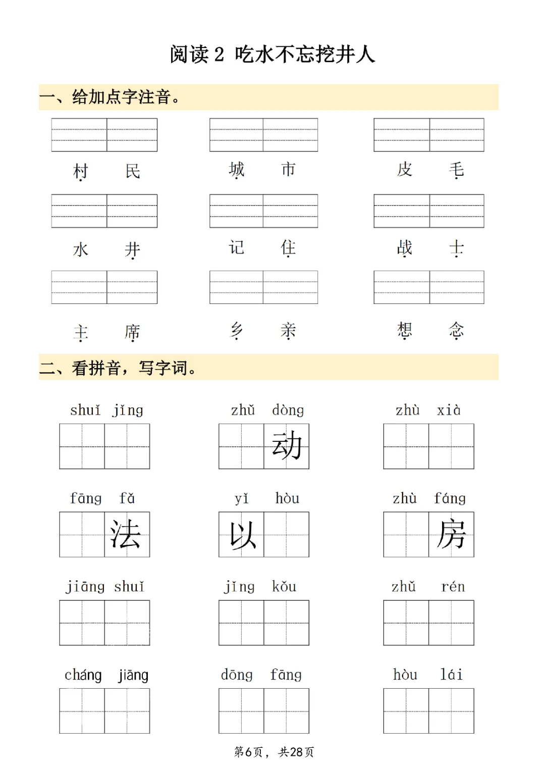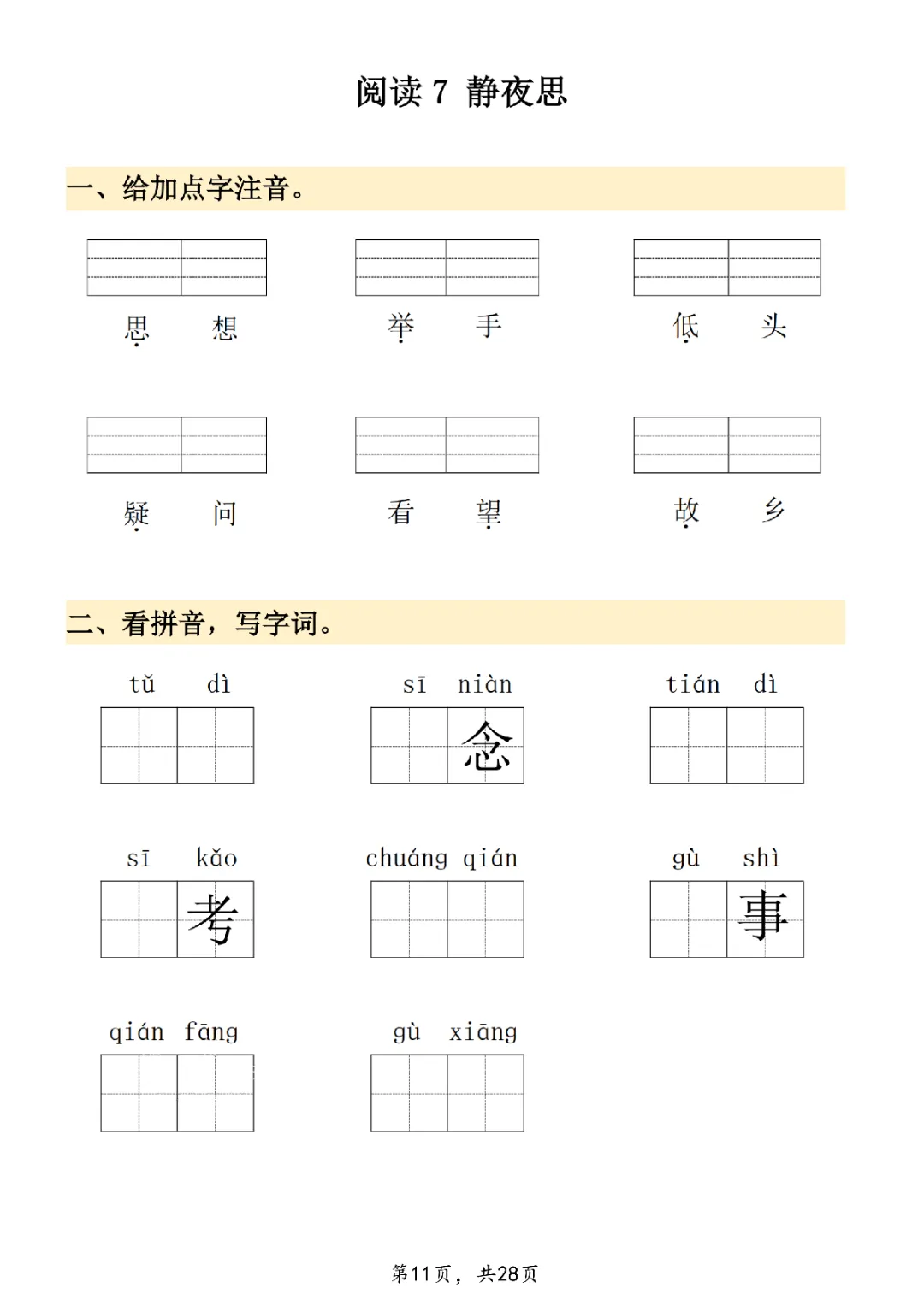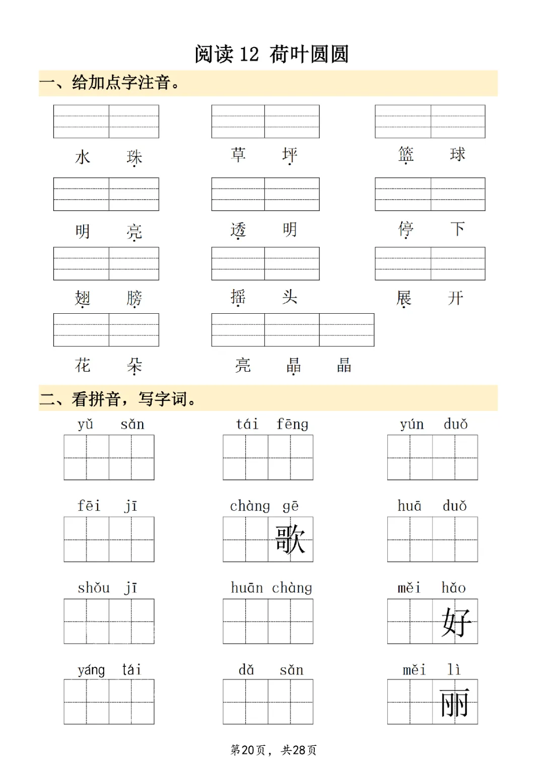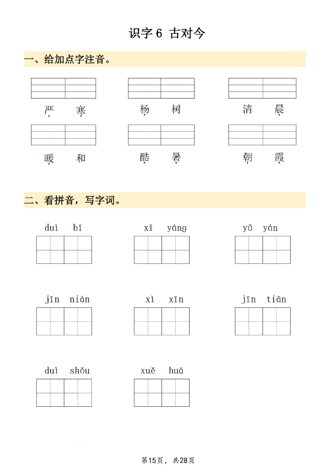 2026年一年级下册语文看拼音写词语|电子版可打印