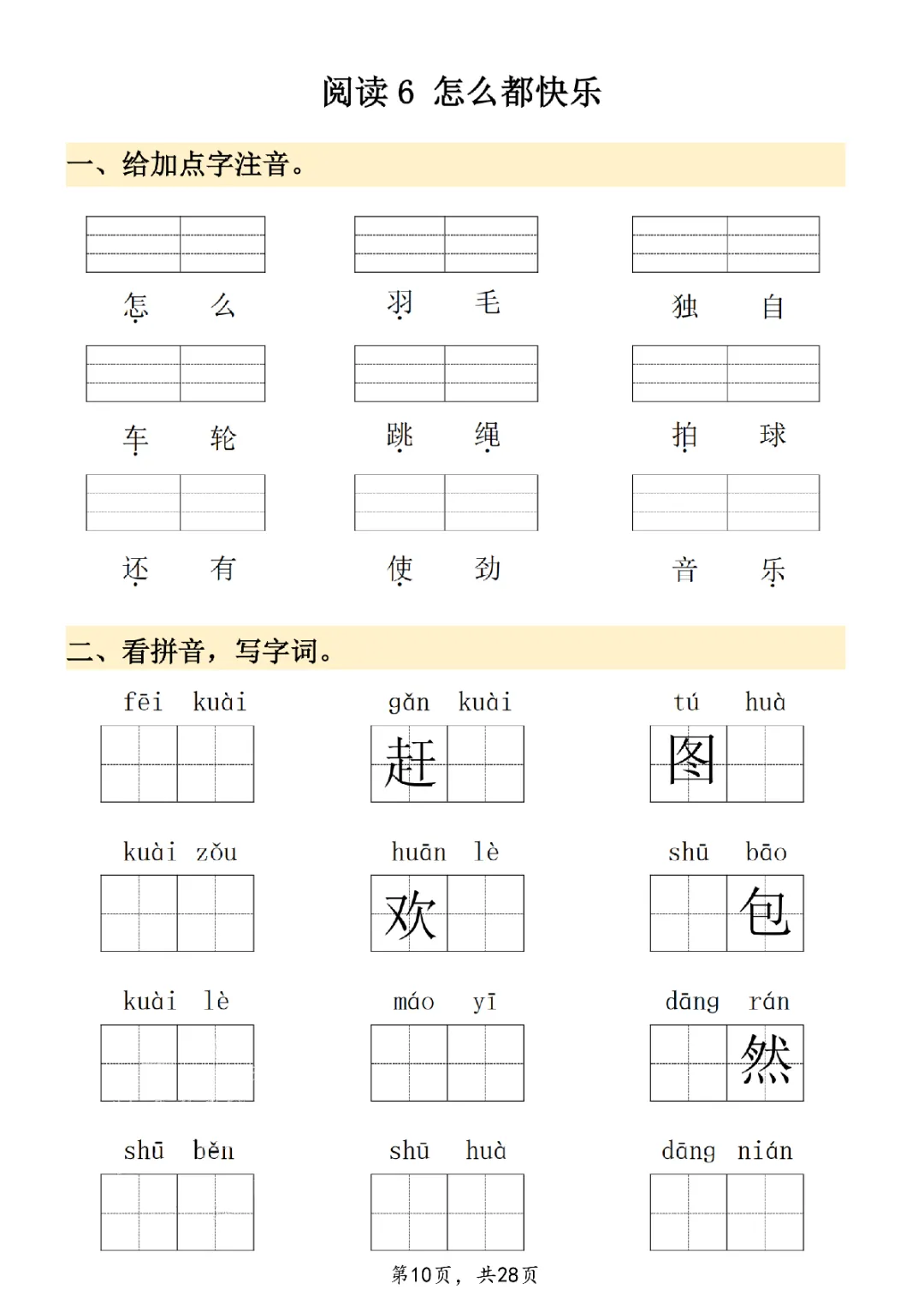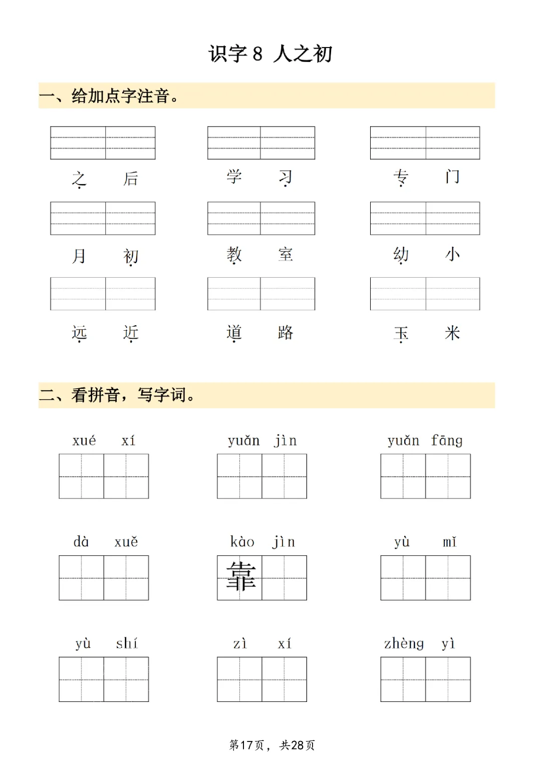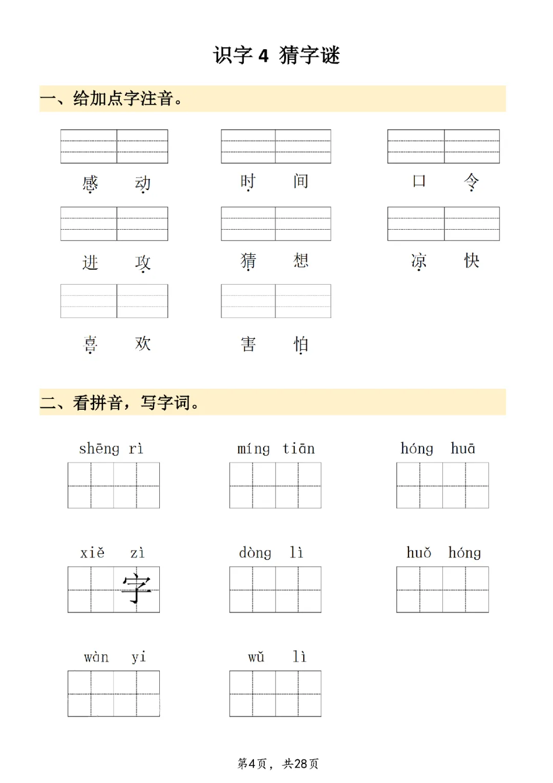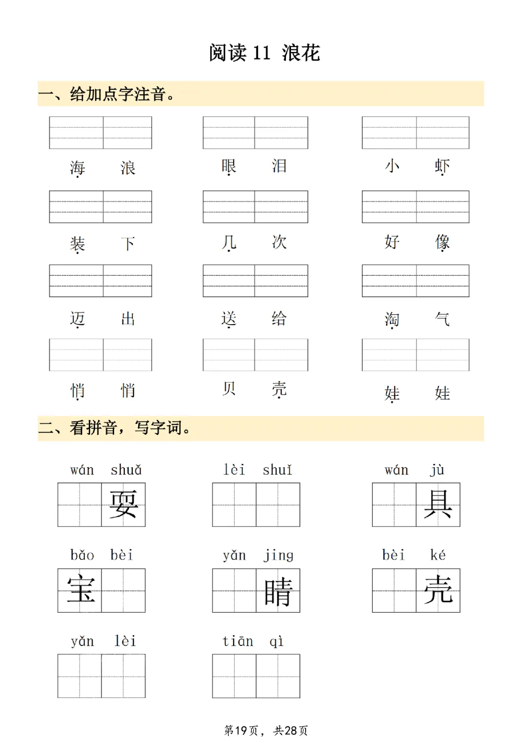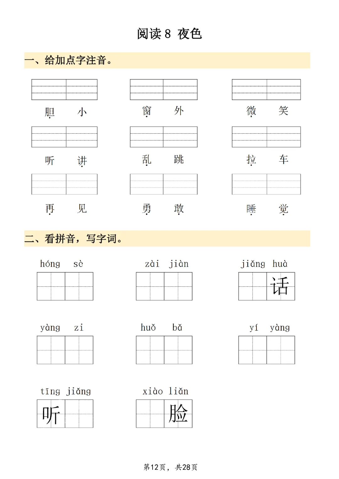 2026年一年级下册语文看拼音写词语|电子版可打印