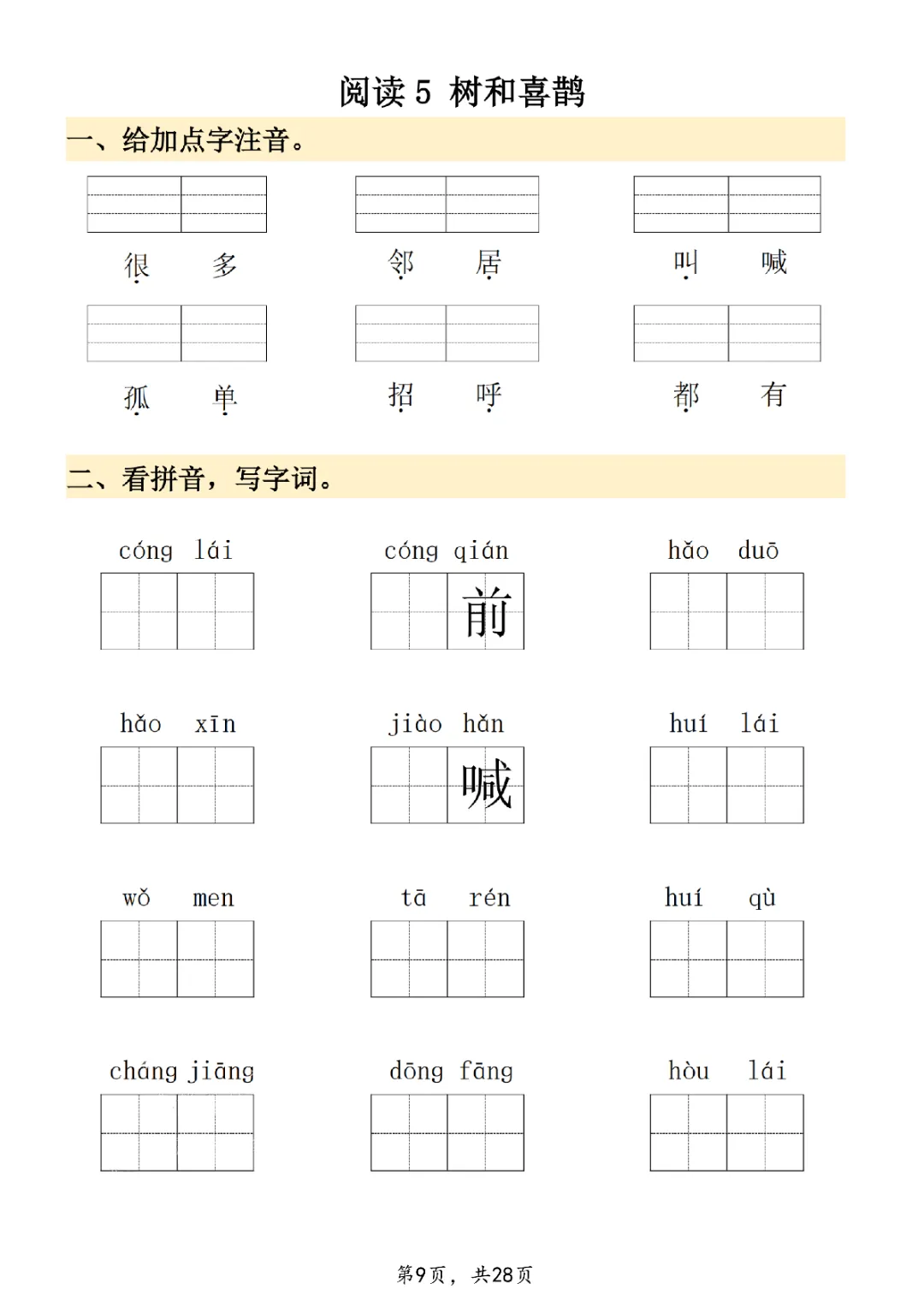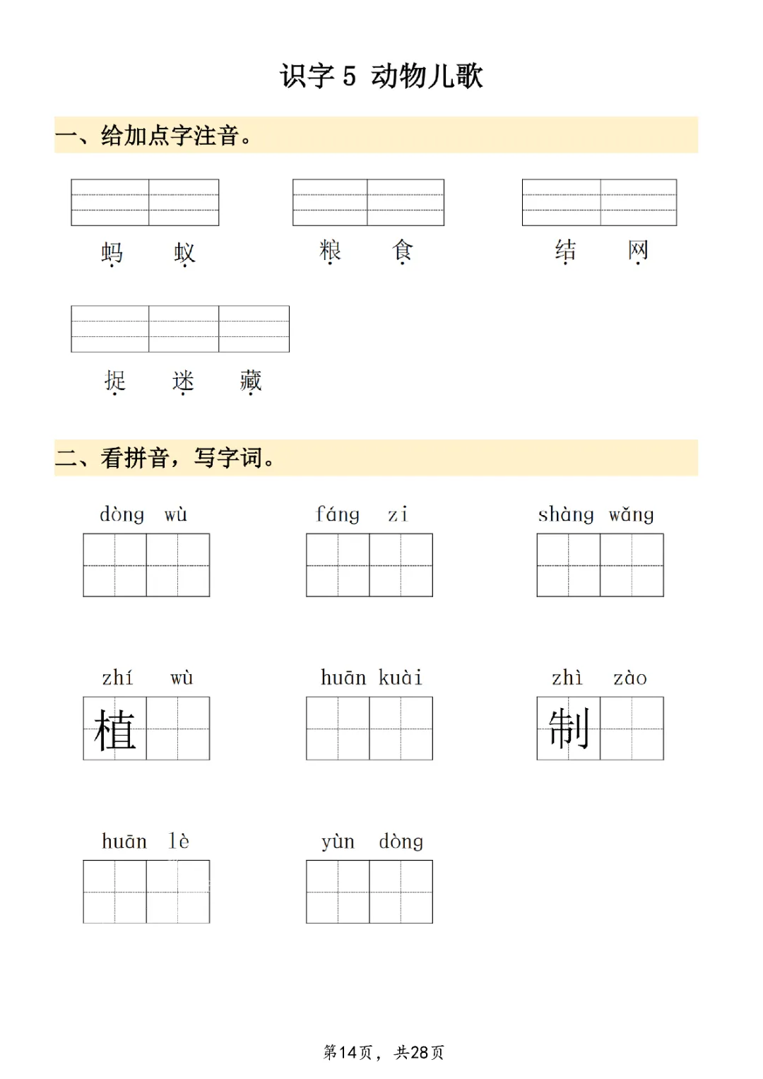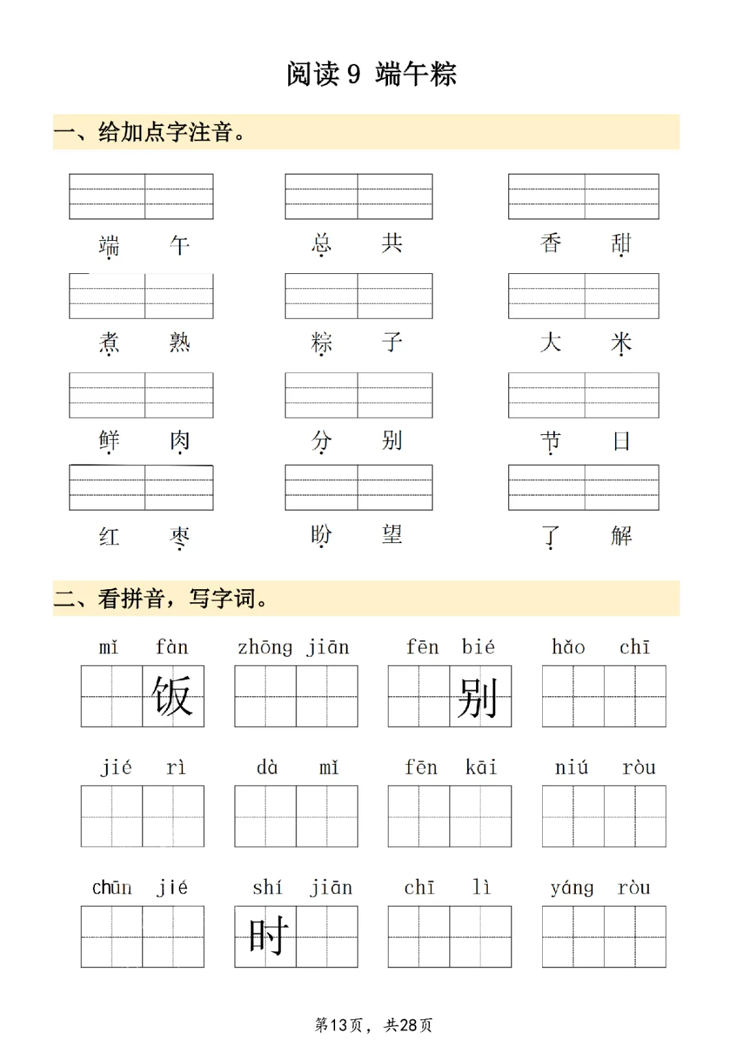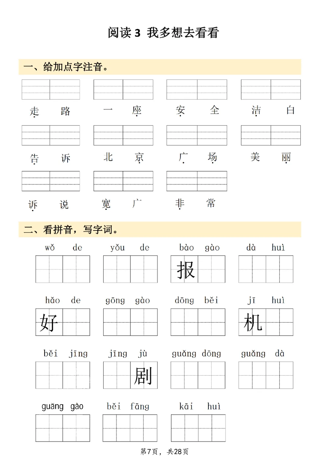 2026年一年级下册语文看拼音写词语|电子版可打印