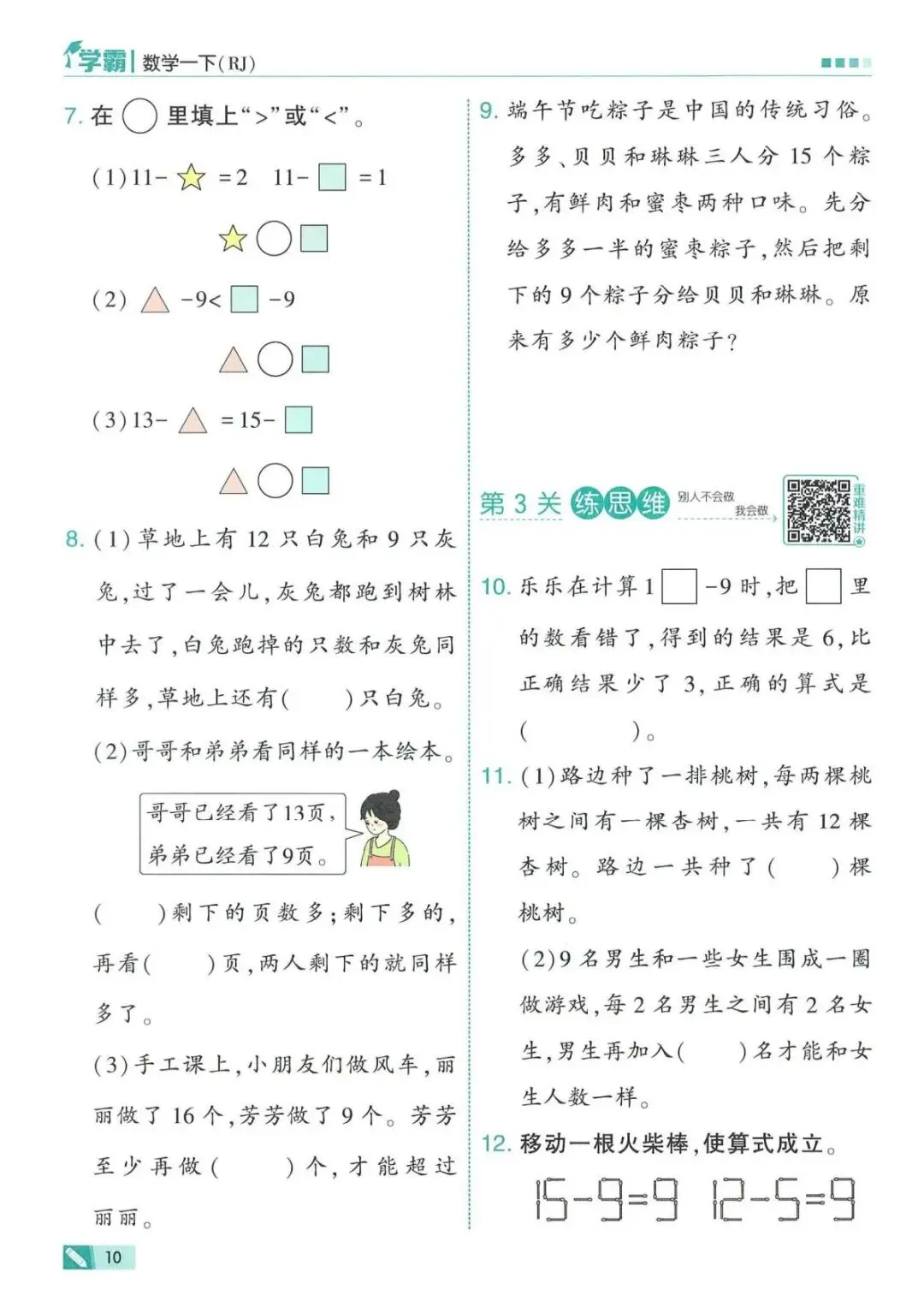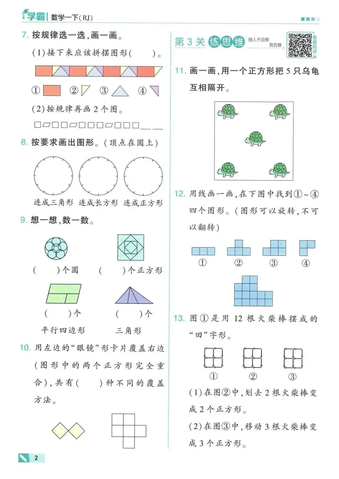 26年春一年级下册数学全册一课一练,可电子版下载打印