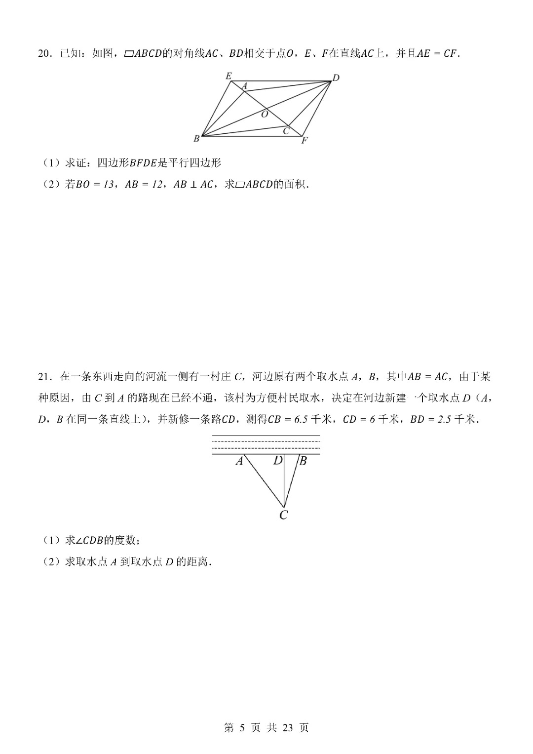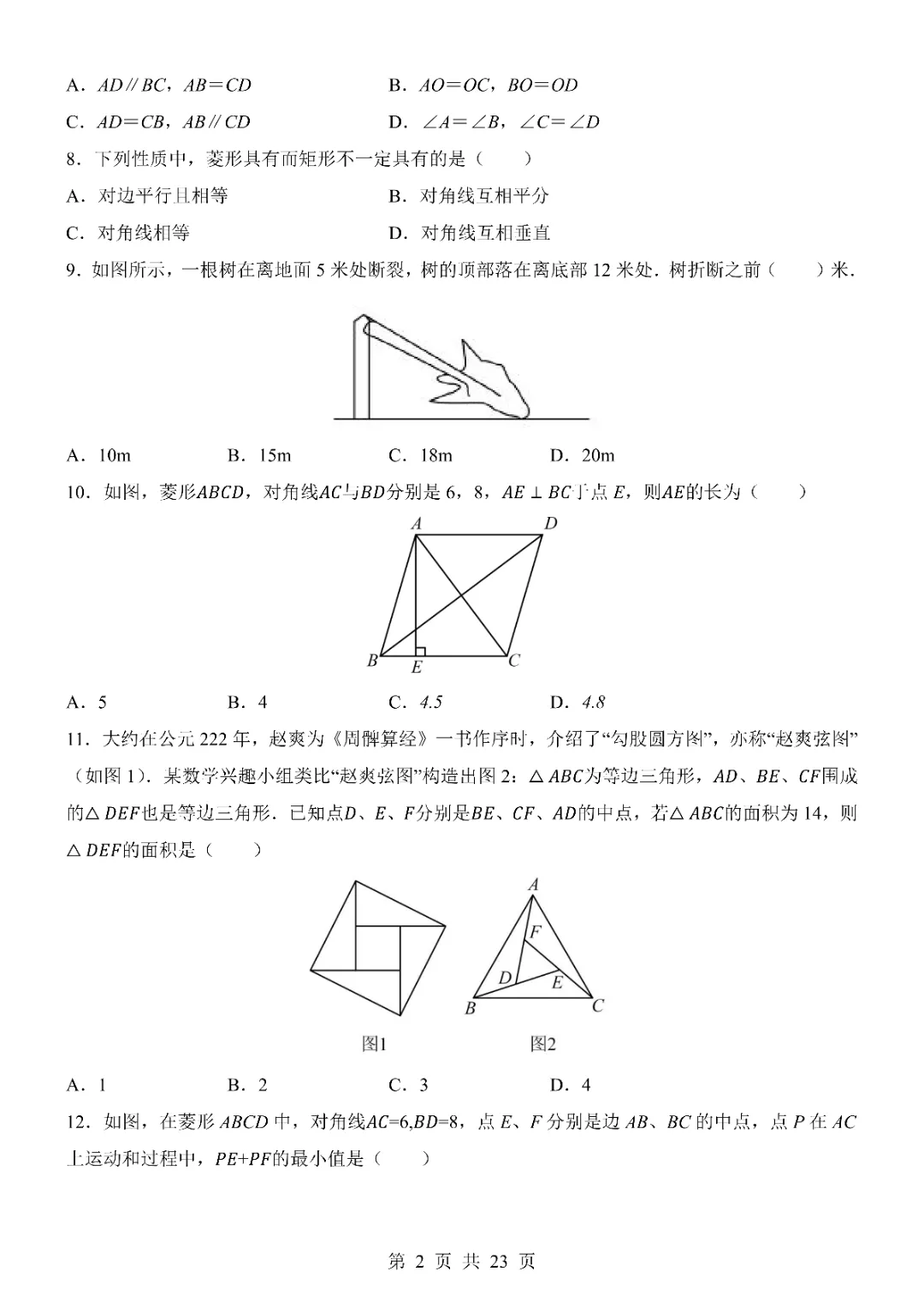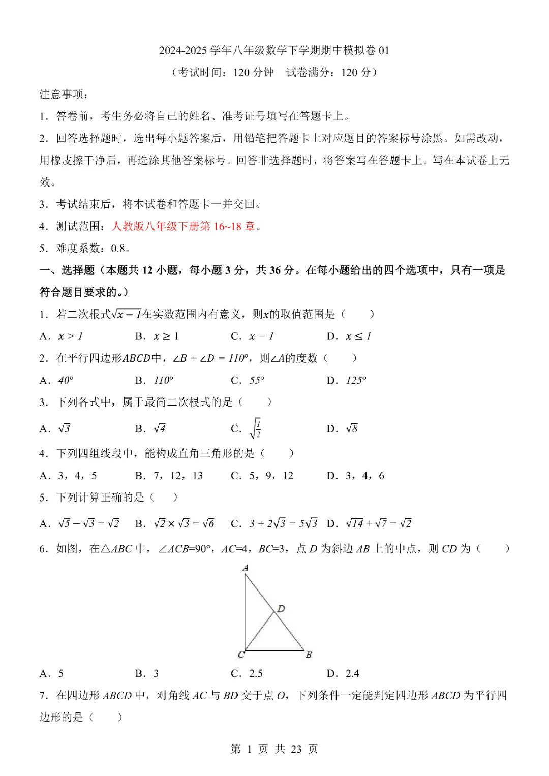 2026年八年级下册数学期中试卷,完整电子版可打印。