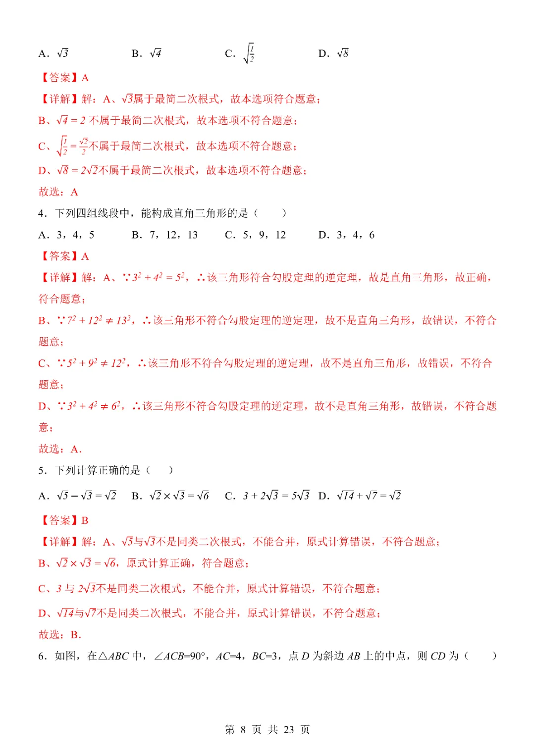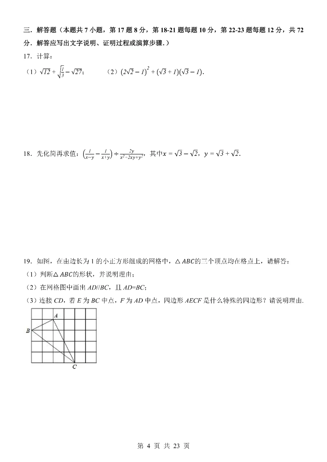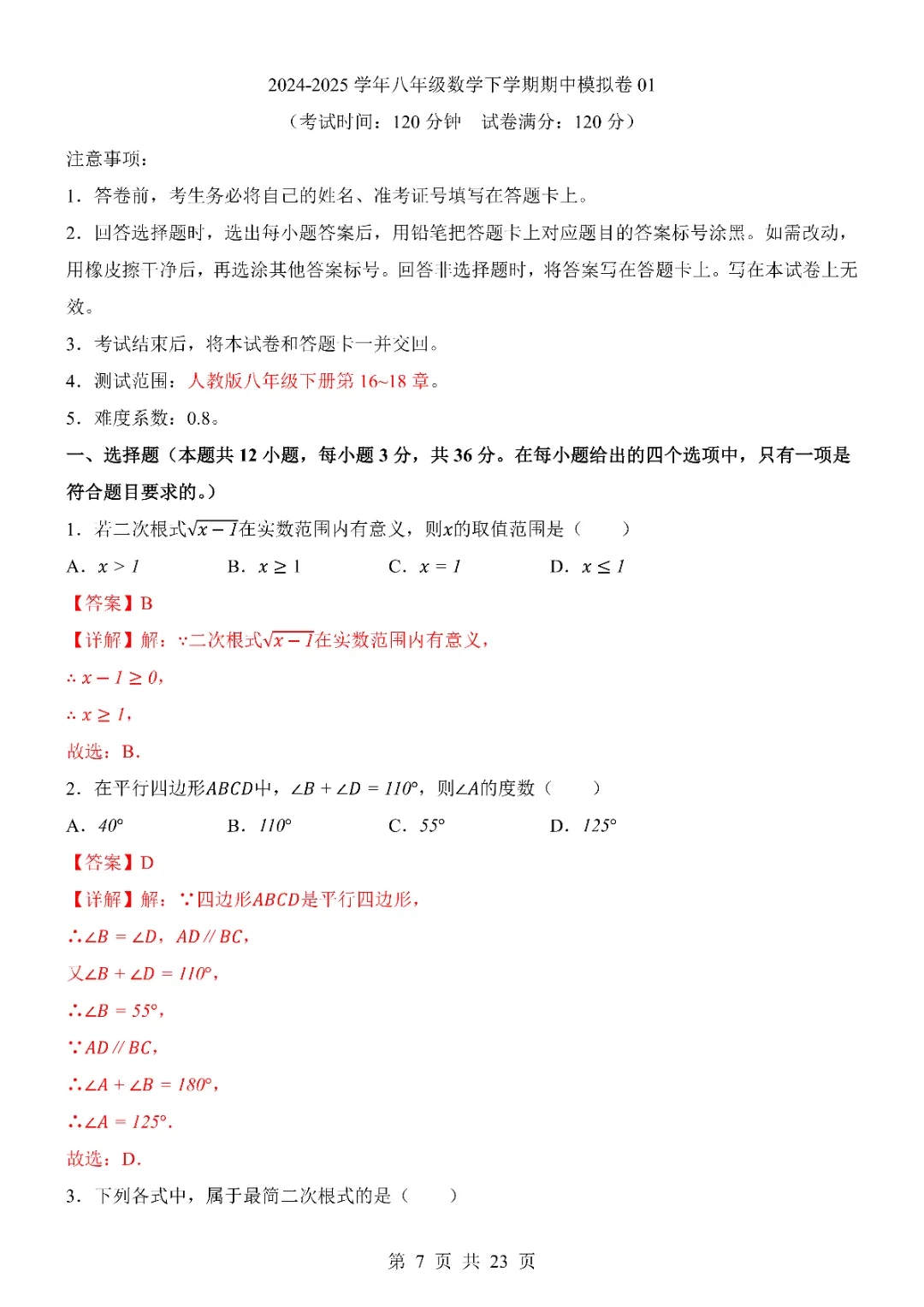 2026年八年级下册数学期中试卷,完整电子版可打印。