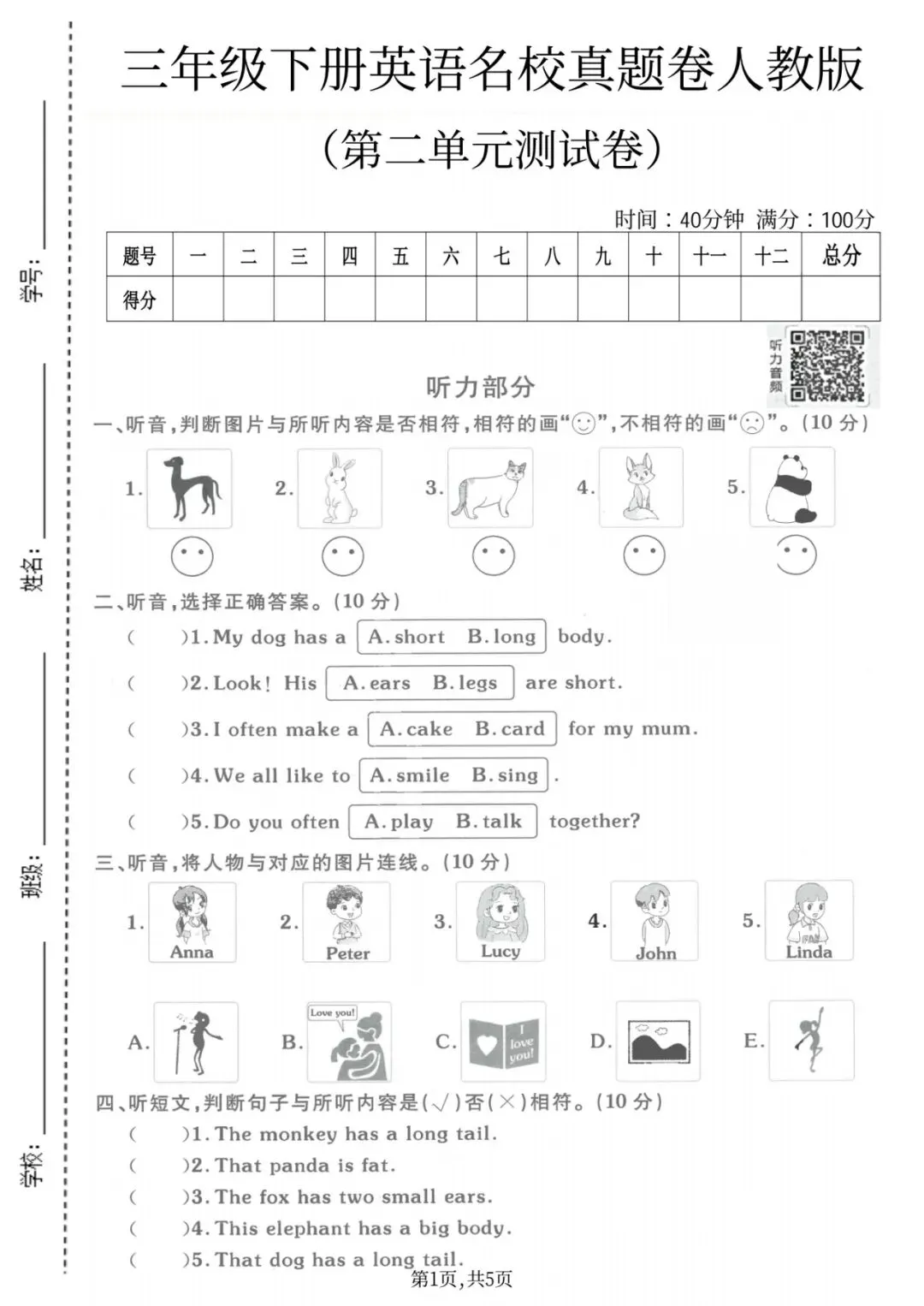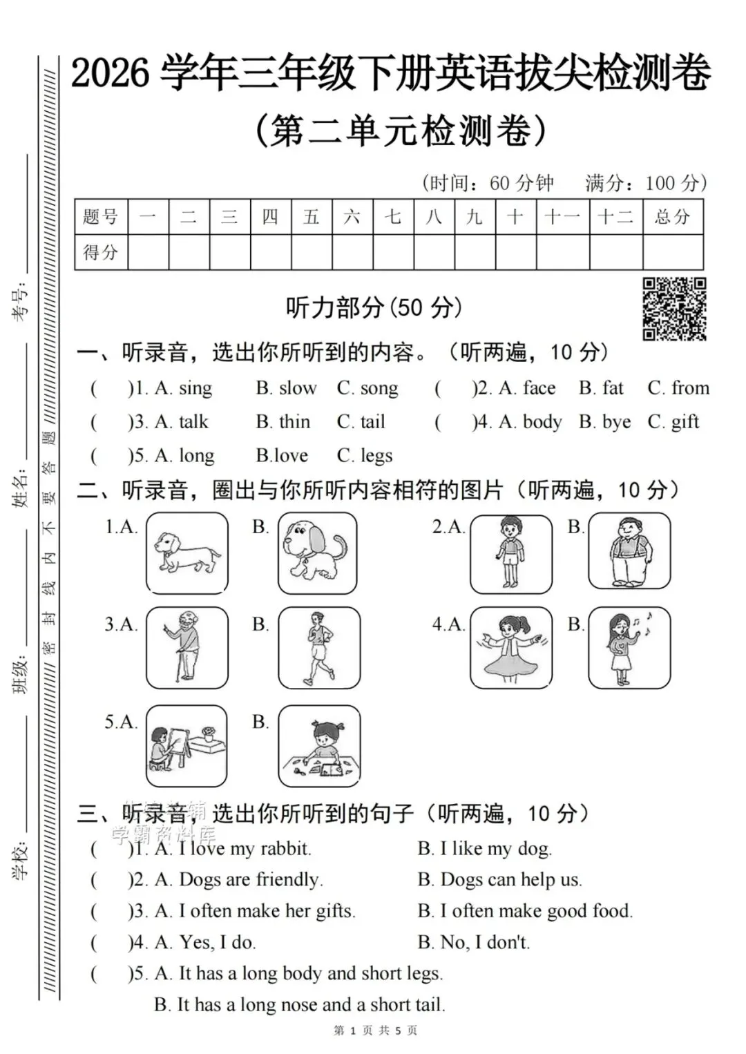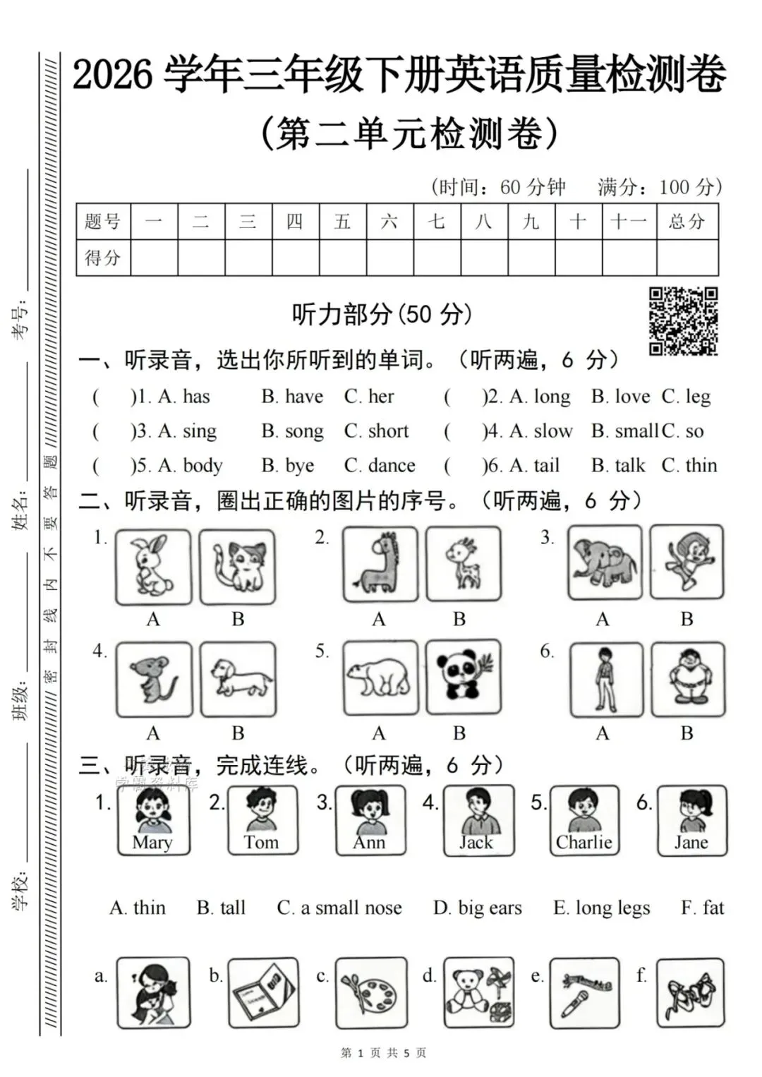 🌟2026春新版三年级下册人教PEP版英语,第二单元检测试卷3套,有答案,含听力音频,电子版可下载打印。这3套试卷紧扣三年级下册第二单元知识点,含真题卷、质量卷、拔尖卷,覆盖听力、填空、选择、阅读、写作题,提前帮孩子检测学习成果,查漏补缺再巩固提高,需要的家长老师抓紧领回去,给孩子查漏补缺吧💪!