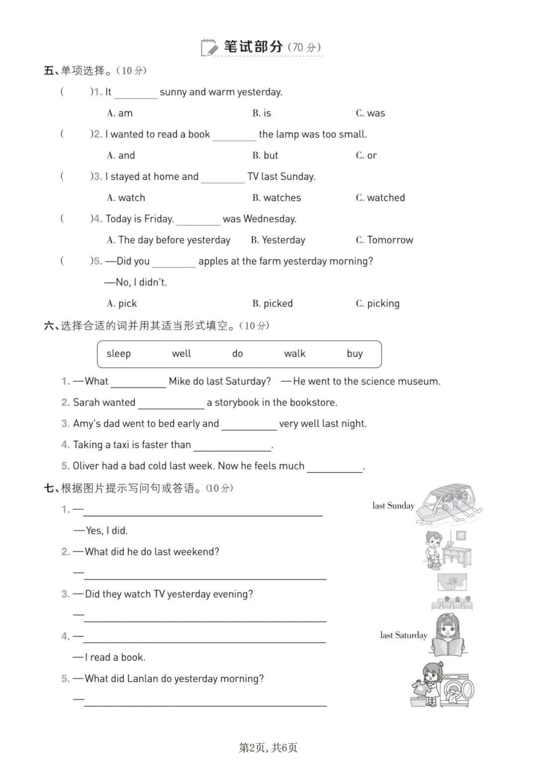 🌟2026春新版六年级下册人教PEP版英语,第二单元检测试卷3套,有答案,含听力音频,电子版可下载打印。这3套试卷紧扣六年级下册第二单元知识点,含达标卷、质量卷、提升卷,覆盖听力、填空、选择、阅读、写作题等,提前帮孩子检测学习成果,查漏补缺再巩固提高,需要的家长老师抓紧领回去,给孩子查漏补缺吧💪!