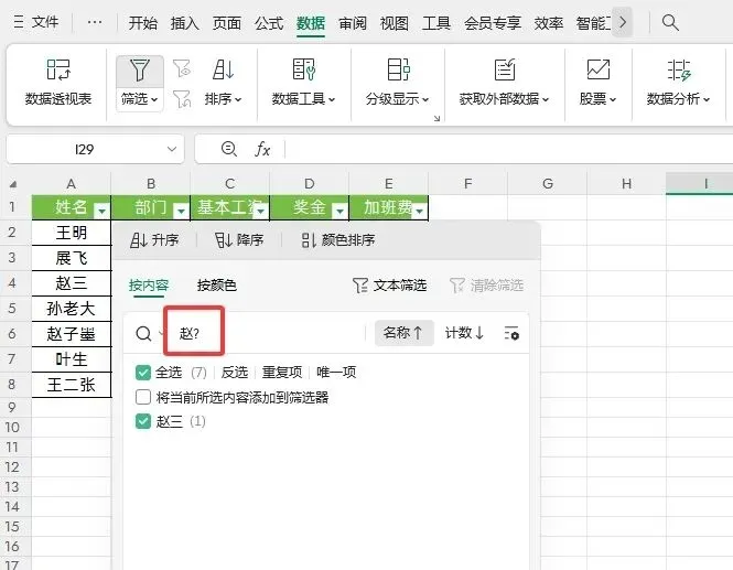 当然,如果要筛选以“赵”姓开头的所有姓名。