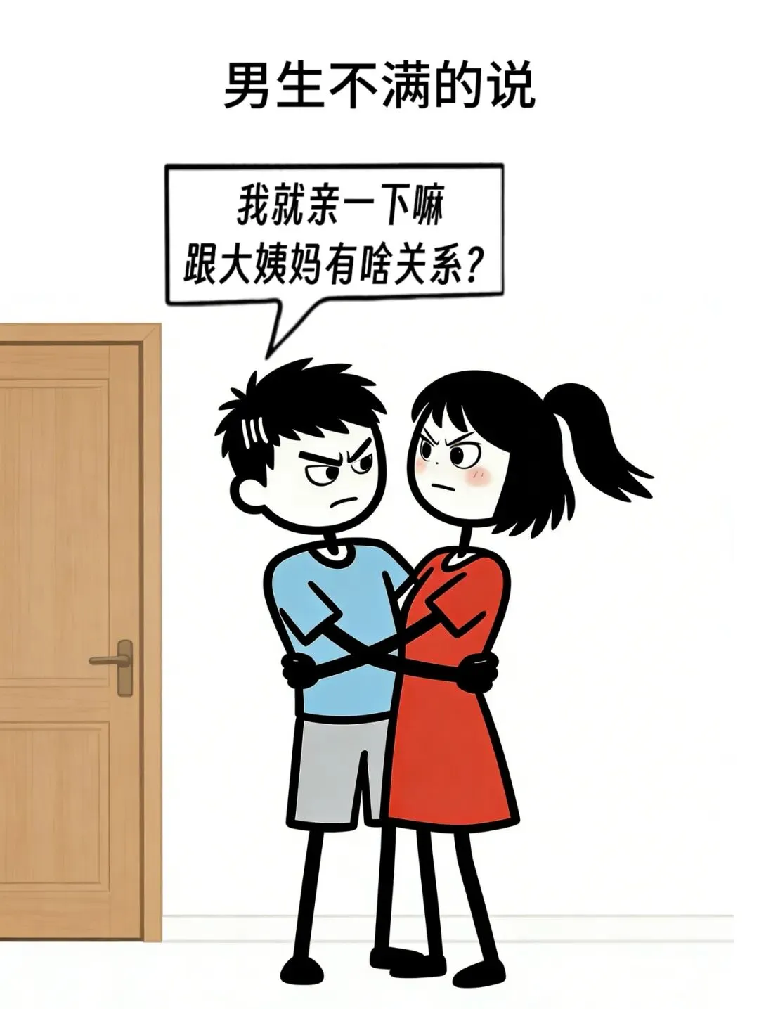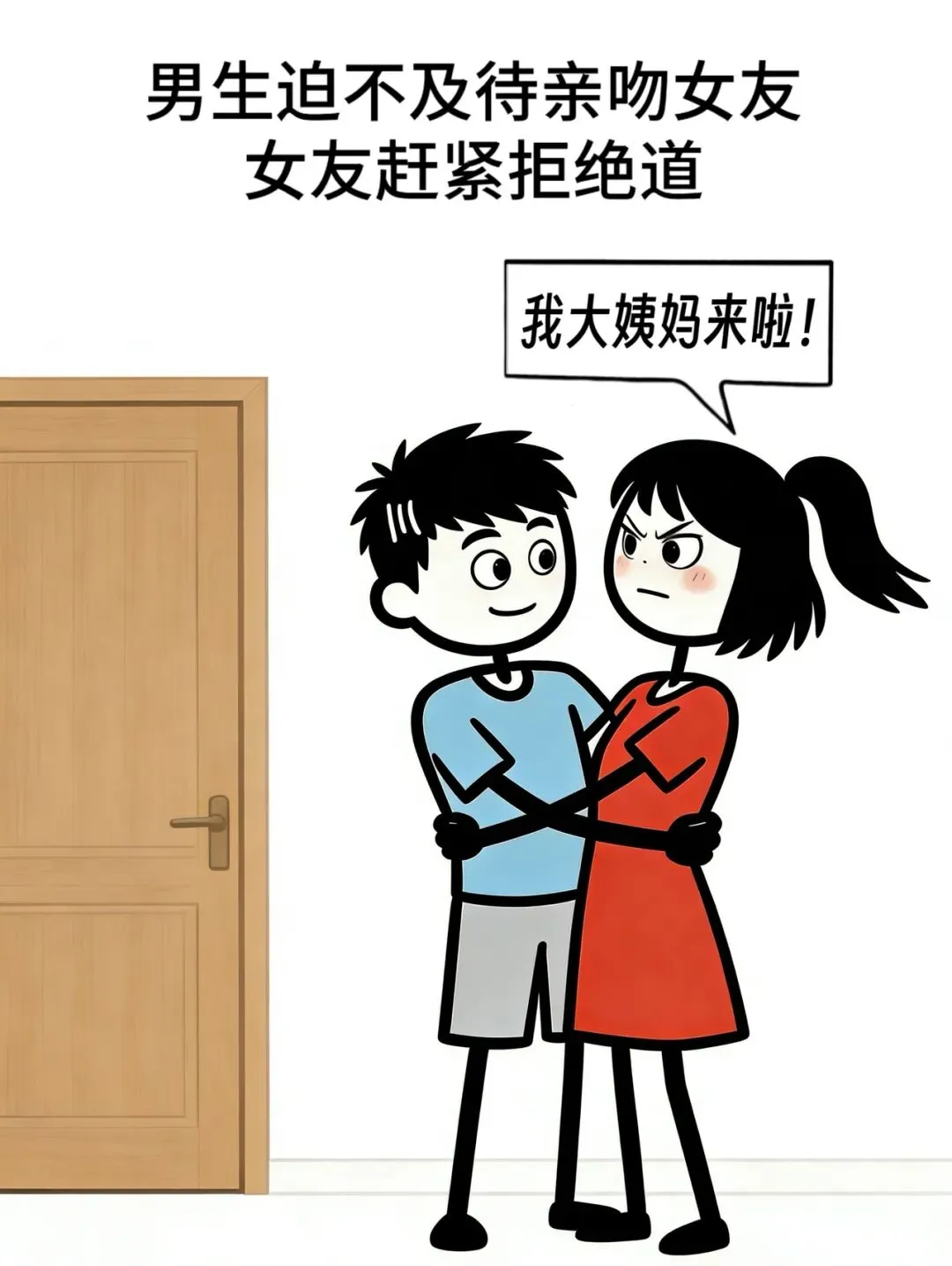 爆笑解压漫画:男生刚到女友家,就迫不及待亲吻女友.女友拒绝道:我大姨妈来啦.男友:亲亲没关系.女友:大姨妈真来了~大姨妈冲出厨房