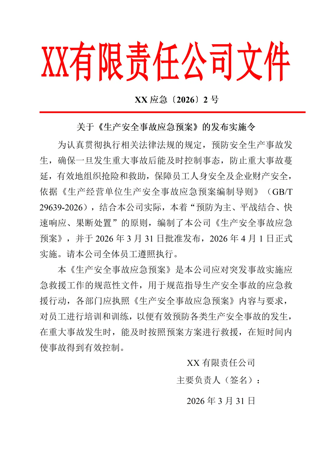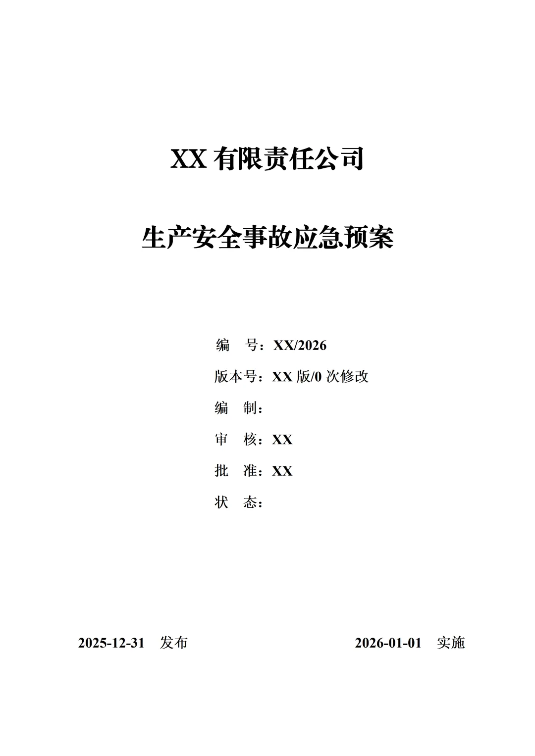 2026新版生产安全事故应急预案200页Word文档(参考模板)