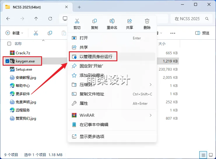 14.右键【Keygen】选择【以管理员身份运行】