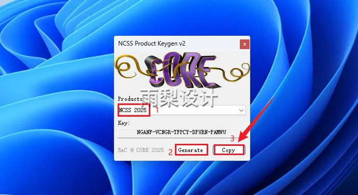 15.①选择【NCSS 2025】,②点击【Generate】,③点击【Copy】