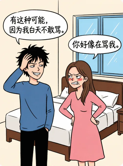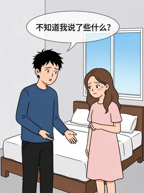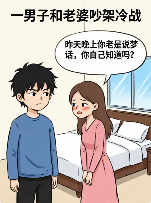 趣味漫画:一男子和老婆吵架冷战.老婆:昨天晚上你老是说梦话,你自己知道吗?老公:不知道,我说了些什么?