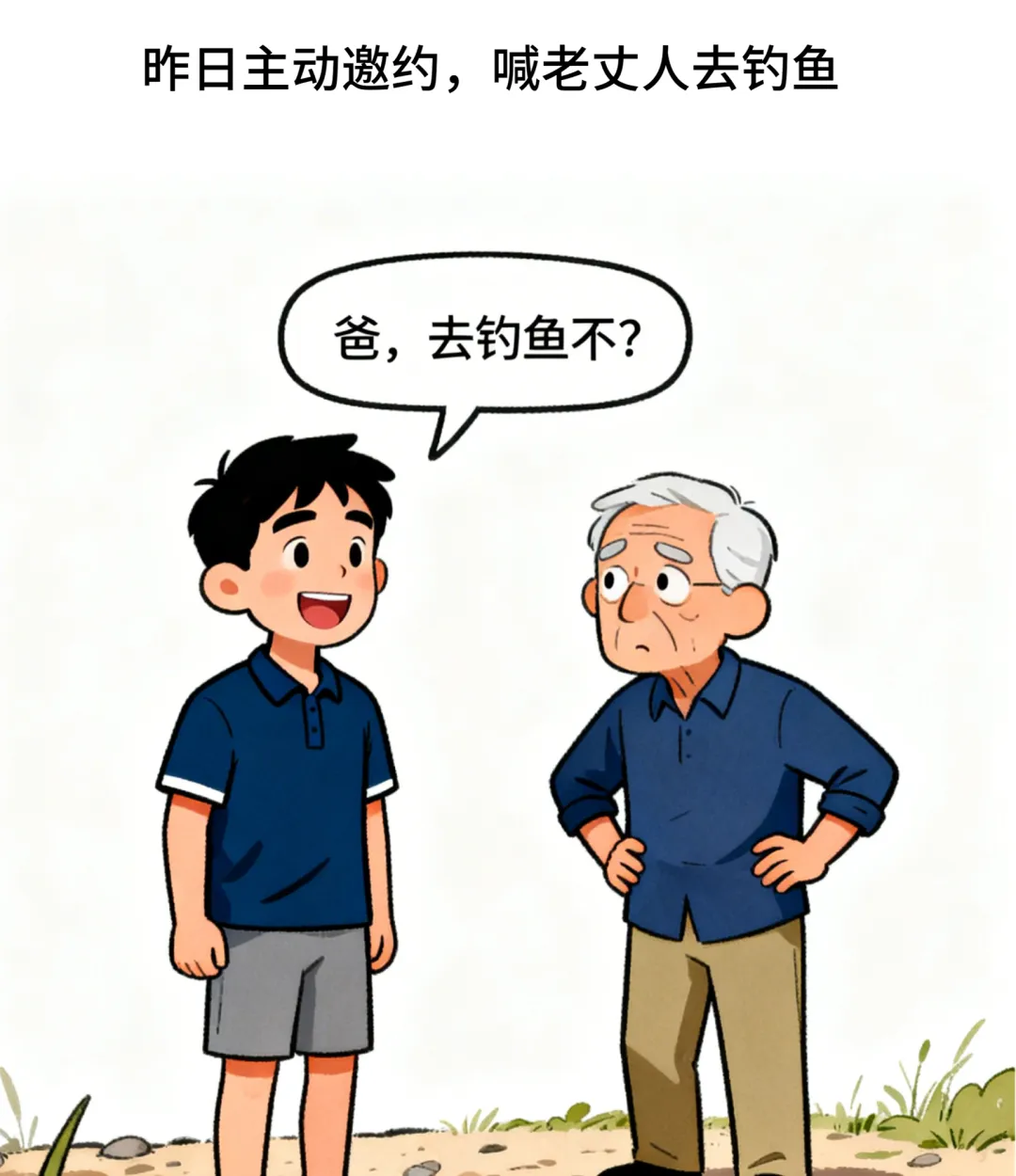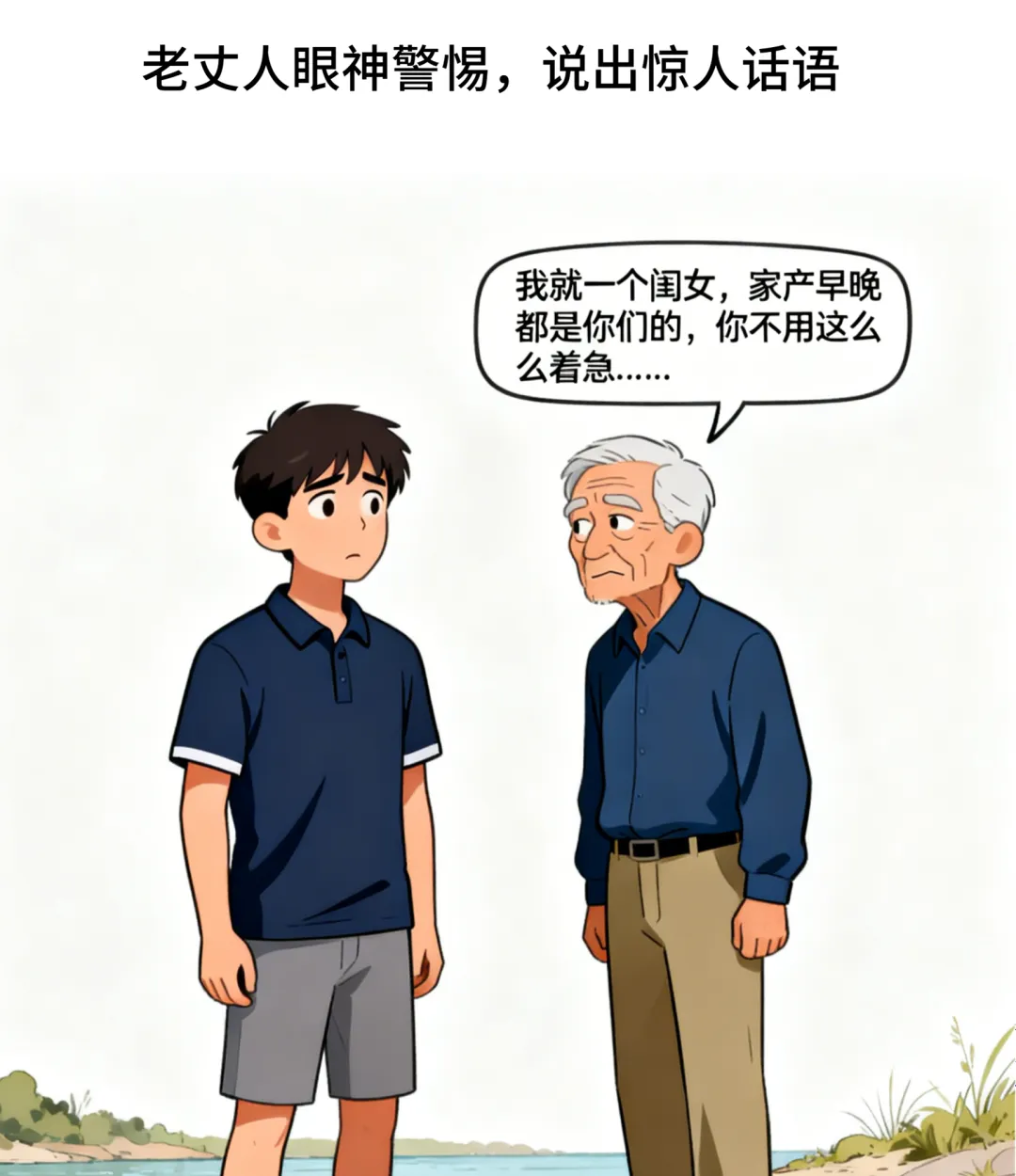二六漫画:我把老丈人撞进河里,后来喊他:爸,去钓鱼不?老丈人瞅我一眼:我就一个闺女,家产早晚都是你们的,你不用这么着急.