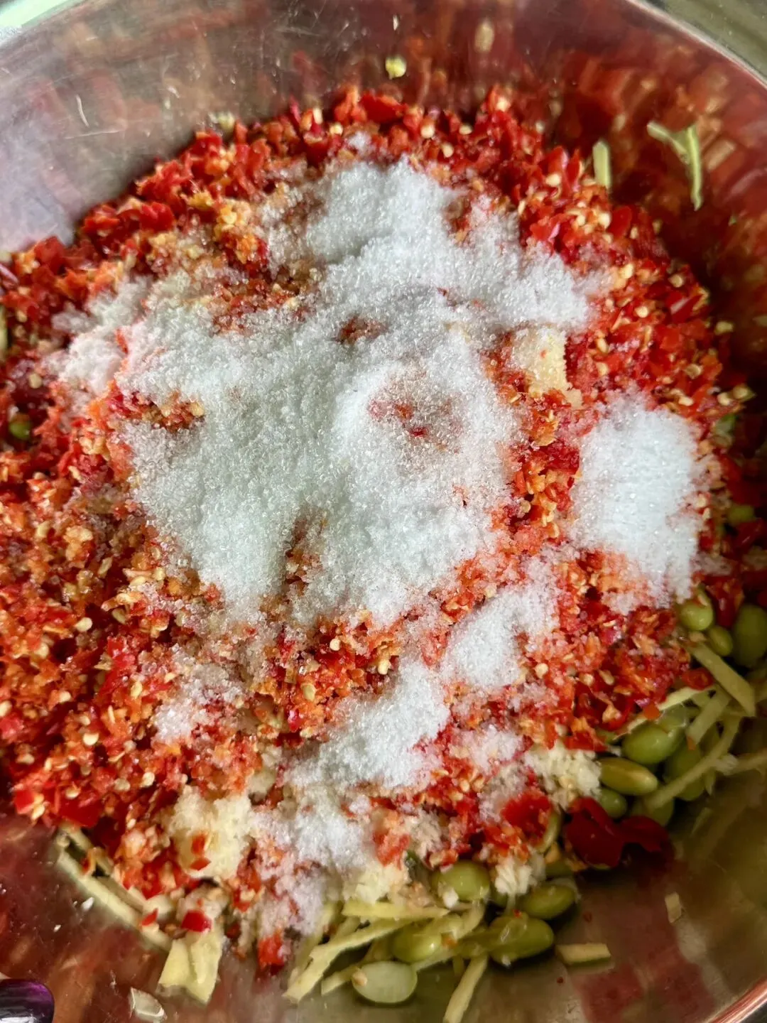 这霉豆可真是江西人童年的满满的回忆呀,藏在烟火气里的宝藏!看到今天婆婆这做法就特亲切,豆子蒸熟了拌上小米椒、姜蒜,撒足盐和一丢丢糖提鲜,装罐时淋点白酒封个香,等上一个礼拜,那股子“臭香”就出来了,越臭越上头,简直是白粥和稀饭的灵魂伴侣!