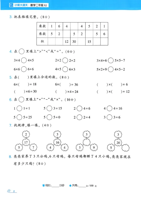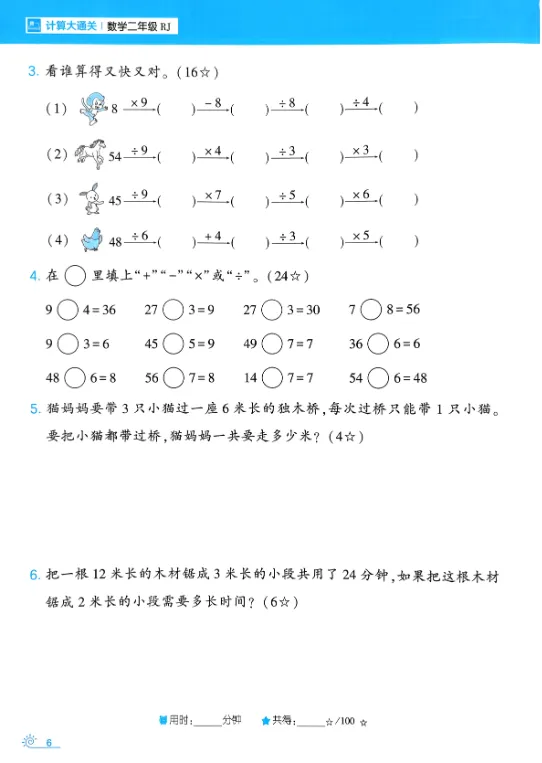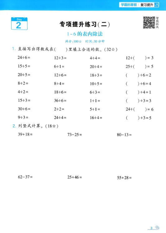 26(新版)二年级下册《计算大通关》共(60页)含有答案完整版,电子版高清可下载可打印。因篇幅有限,仅展示部分内容。有需要的家长快给孩子领取一份,让孩子练习吧!