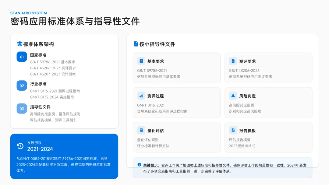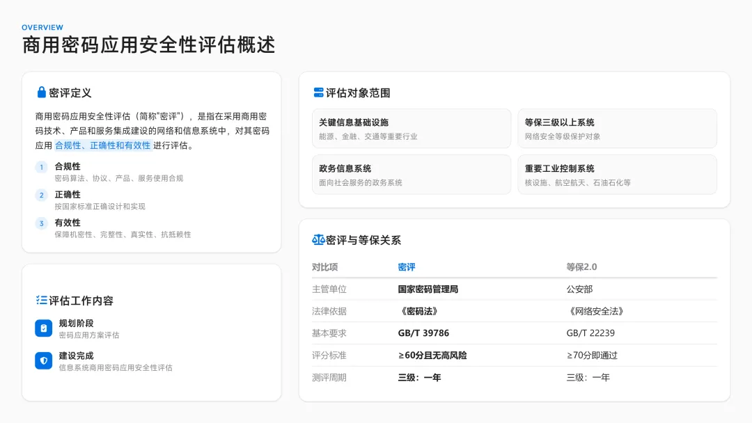 是商用密码应用安全性评估(密评) 的核心依据,覆盖等保对象与关键信息基础设施国家密码管理局。