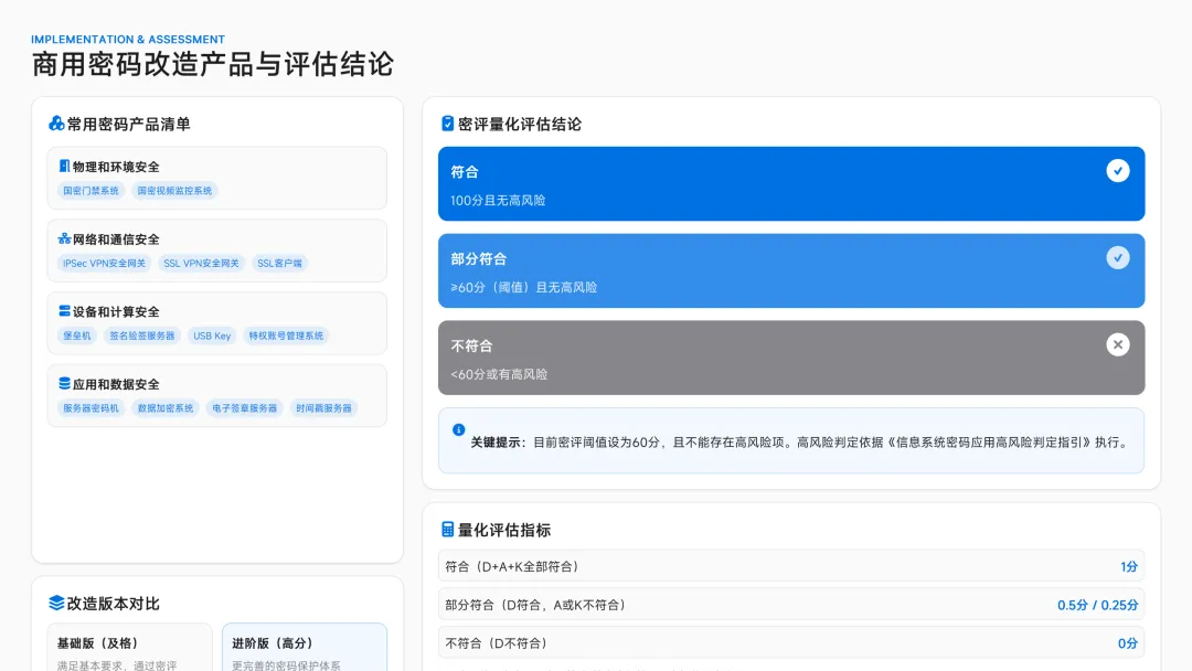 为信息系统密码应用规划、建设、运行、测评提供统一、可落地的技术与管理准则。