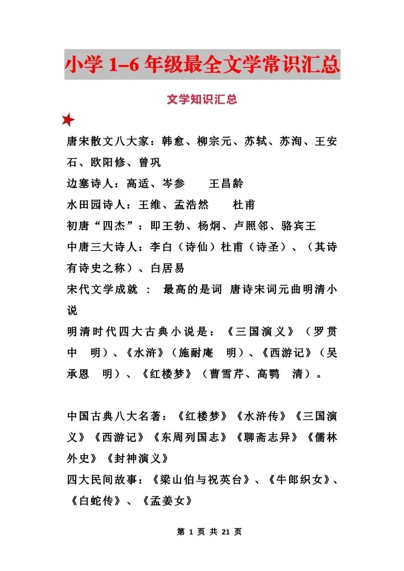 【2026最新合集版】《小学文学常识》1-6年级下册语文免费分享下载,关注我们可免费获取【最新学期课程预习及复习知识点归纳】高清可打印电子版。