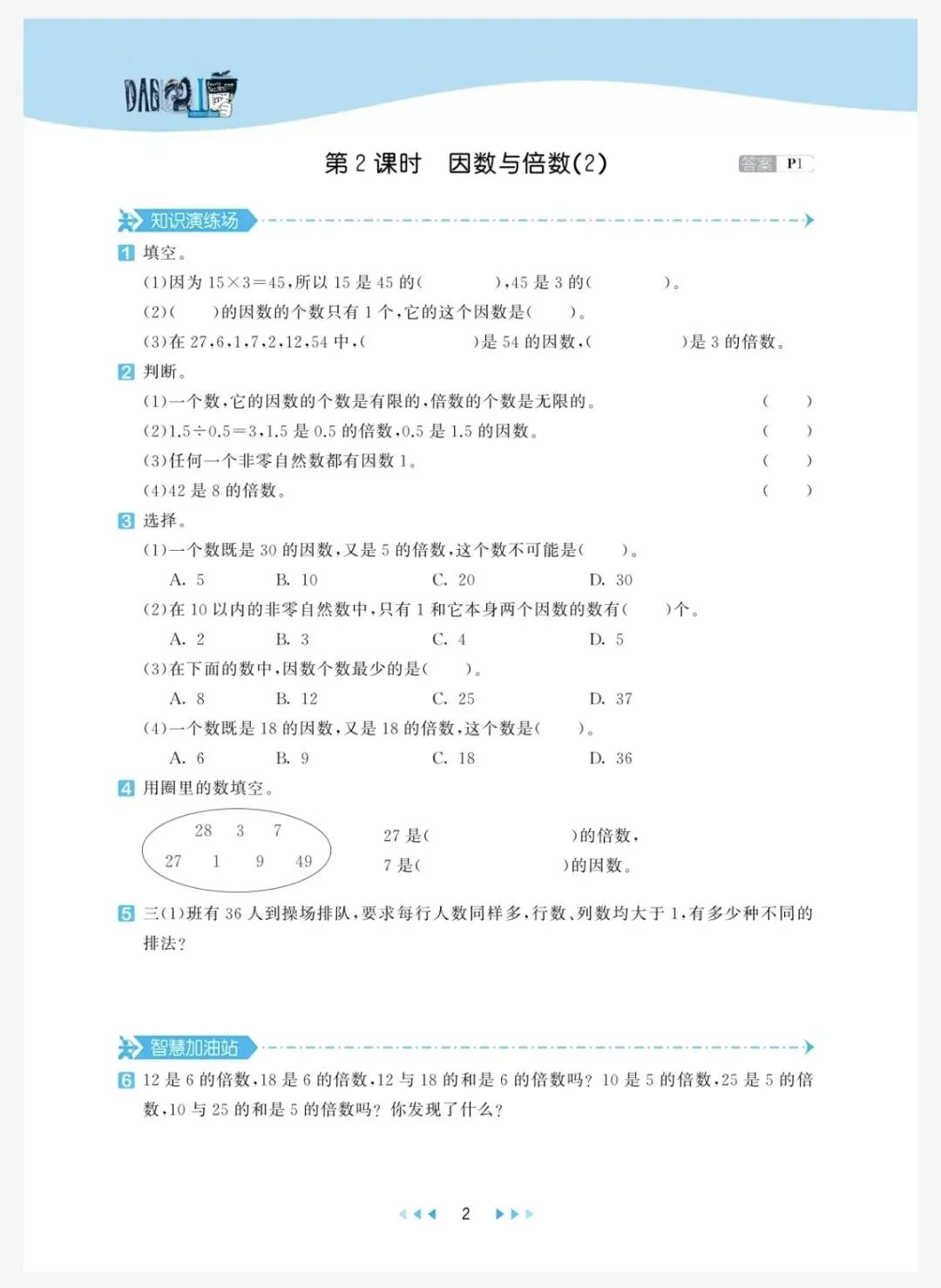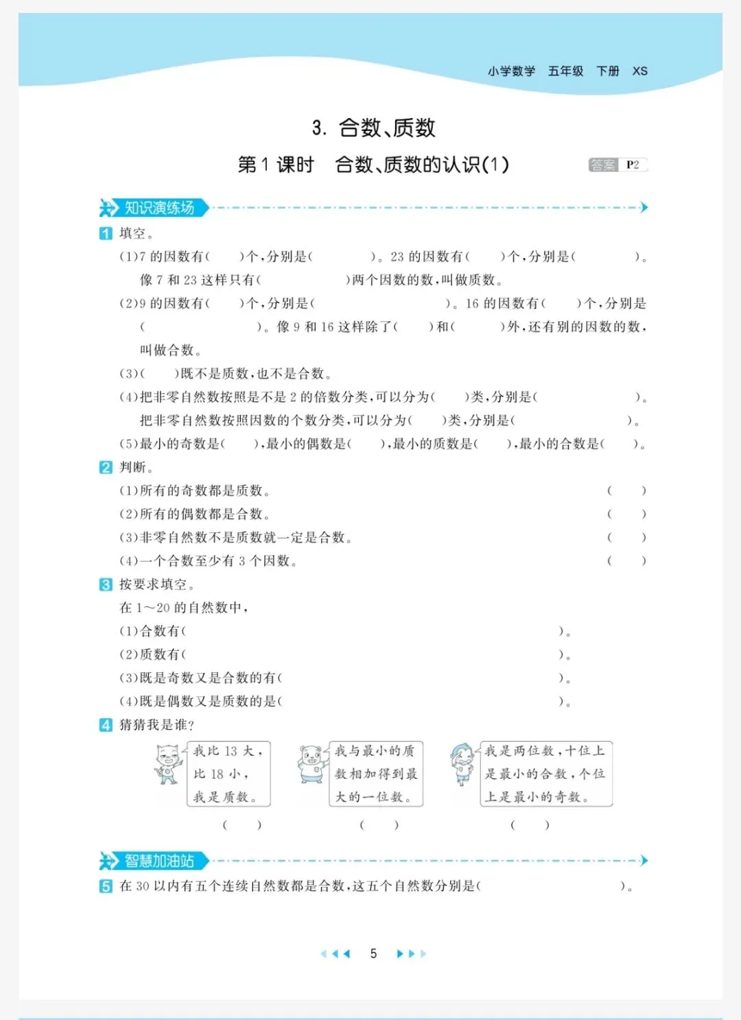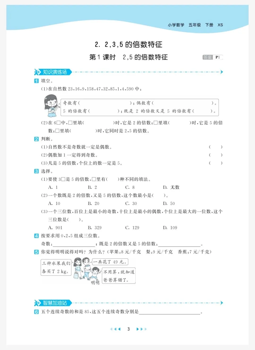 西师版数学五年级(下册)全册《一课一练》含答案 电子版免费可下载