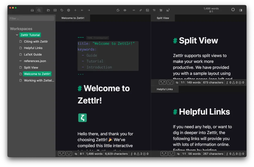 Zettlr 是一款免费开源、跨平台的 Markdown 编辑器,主打学术写作、文献管理与知识管理,特别适合科研、论文、笔记与长文写作。