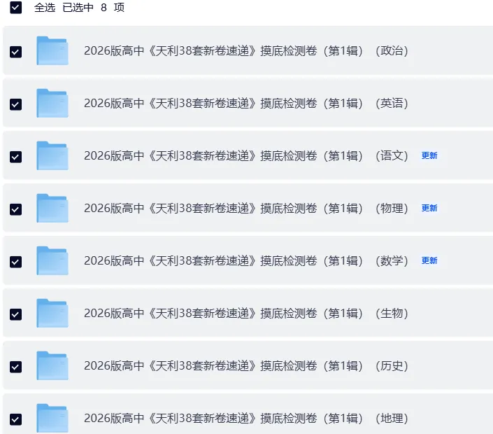 2026版高考必备神器–《天利38套新卷速递》摸底检测卷(第1辑)语文/数学/英语/物理/生物/历史/地理/政治等8科电子版