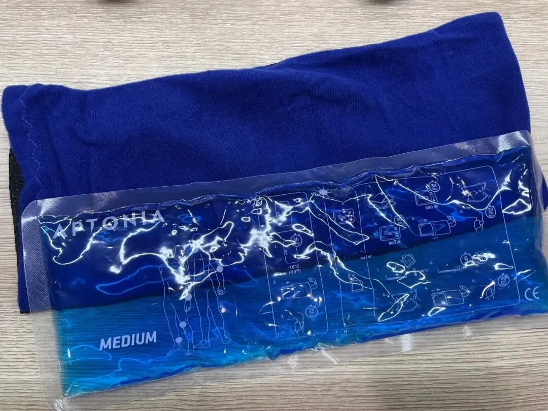 它是凝胶制成的,可以冷热双用。需要热敷,放微波炉加热 60 秒(中高火),或者放在热水里泡泡就行;需要冰敷,放冰箱里冻几个小时,就是个超长待机的冰袋。
