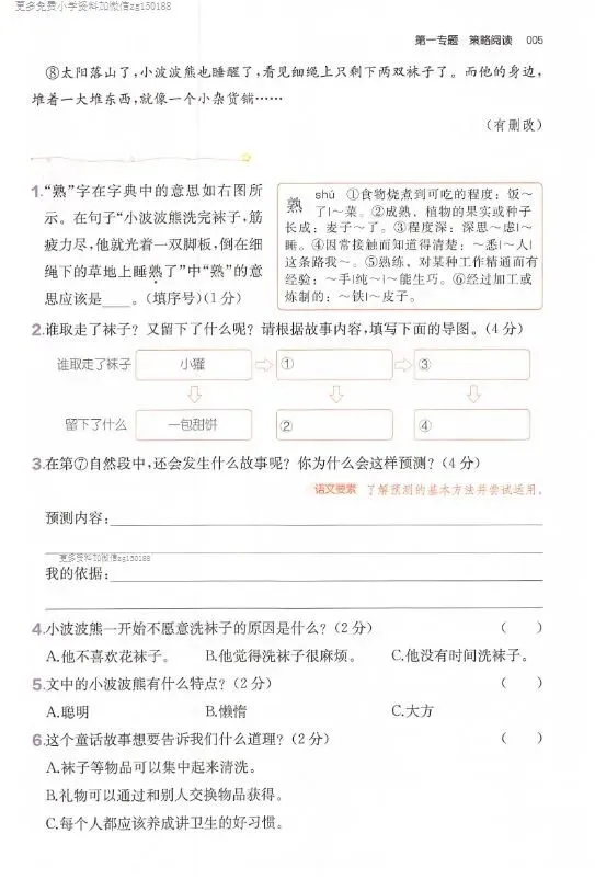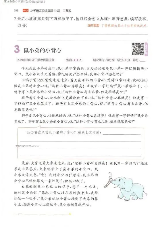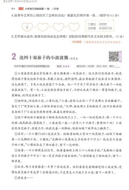 小学语文 一二三四五六年级下册 26版《阅读真题80篇+三段式答案》第6版 | 下载可打印