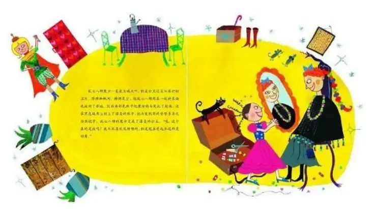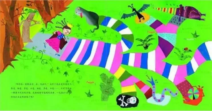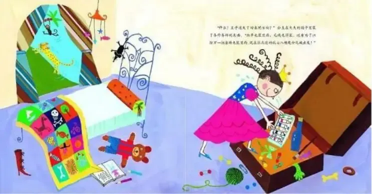 “什么?王子迷失了回来的方向?”公主在大大的箱子里装了各种各样的东西。“珠子也装里面,毛线也得装,还有为了以防万一把颜料也装里面。现在往北边的乱七八糟魔女之城出发!”