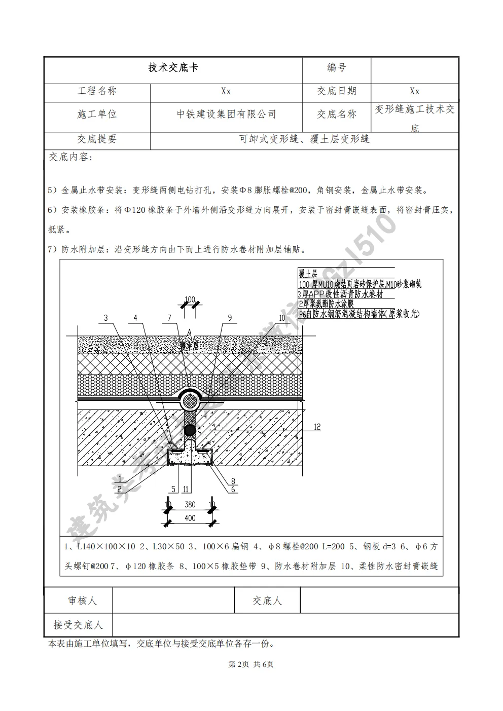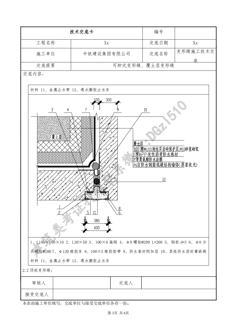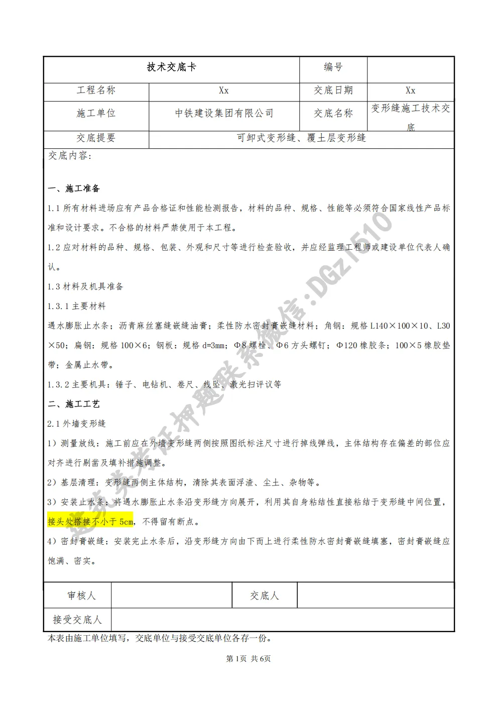【工程资料】变形缝施工技术交底 | 可编辑可下载