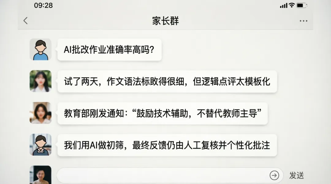 “以前检查数学作业,我要拿着答案一道道对,孩子在旁边等着经常走神。现在AI批改完我直接看错题,省心太多了。”
