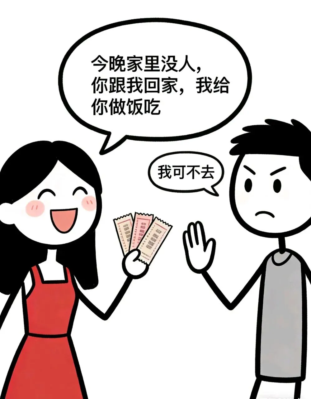 搞笑漫画:晚上约会,我一见到男友就说:我买了3张电影票,男友:3张?我:一张给我爸,一张给我妈,一张给我弟.家里就没人了