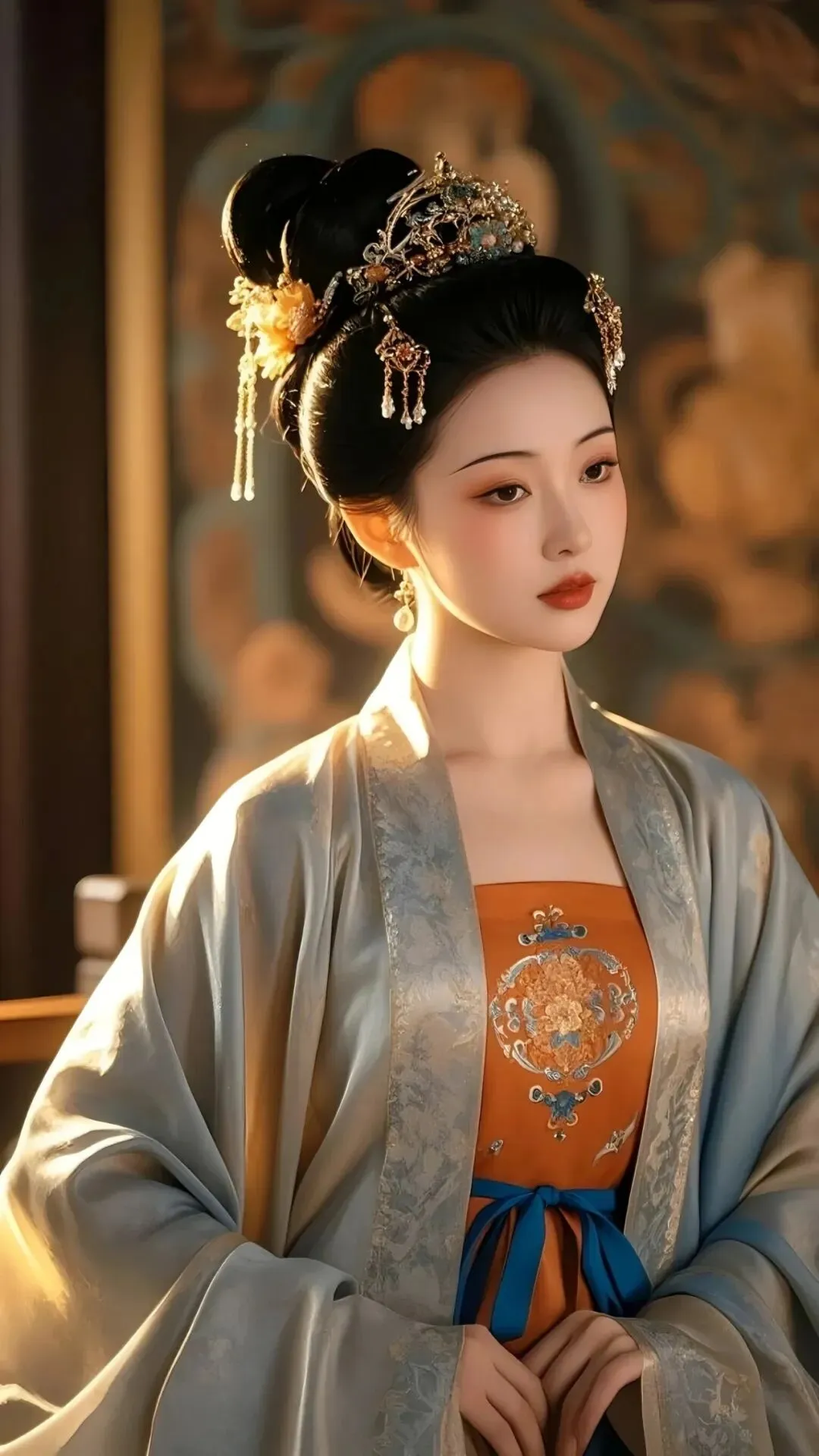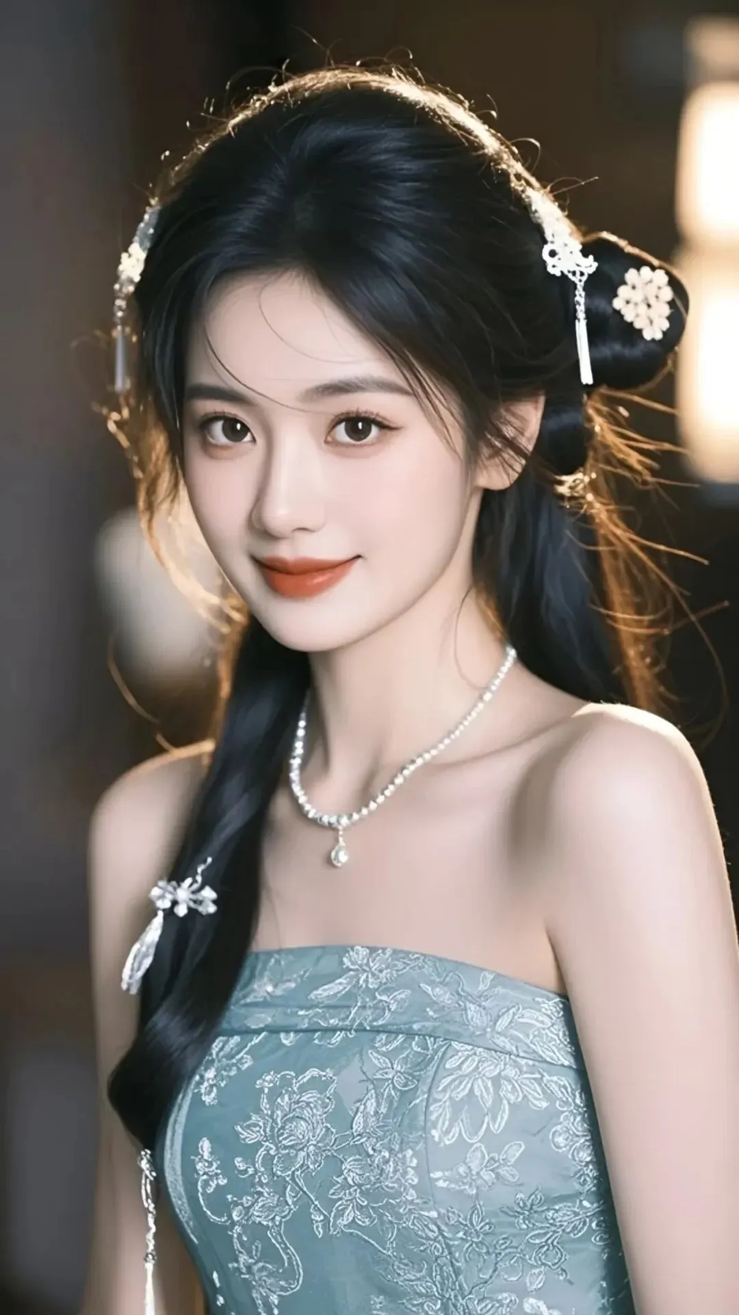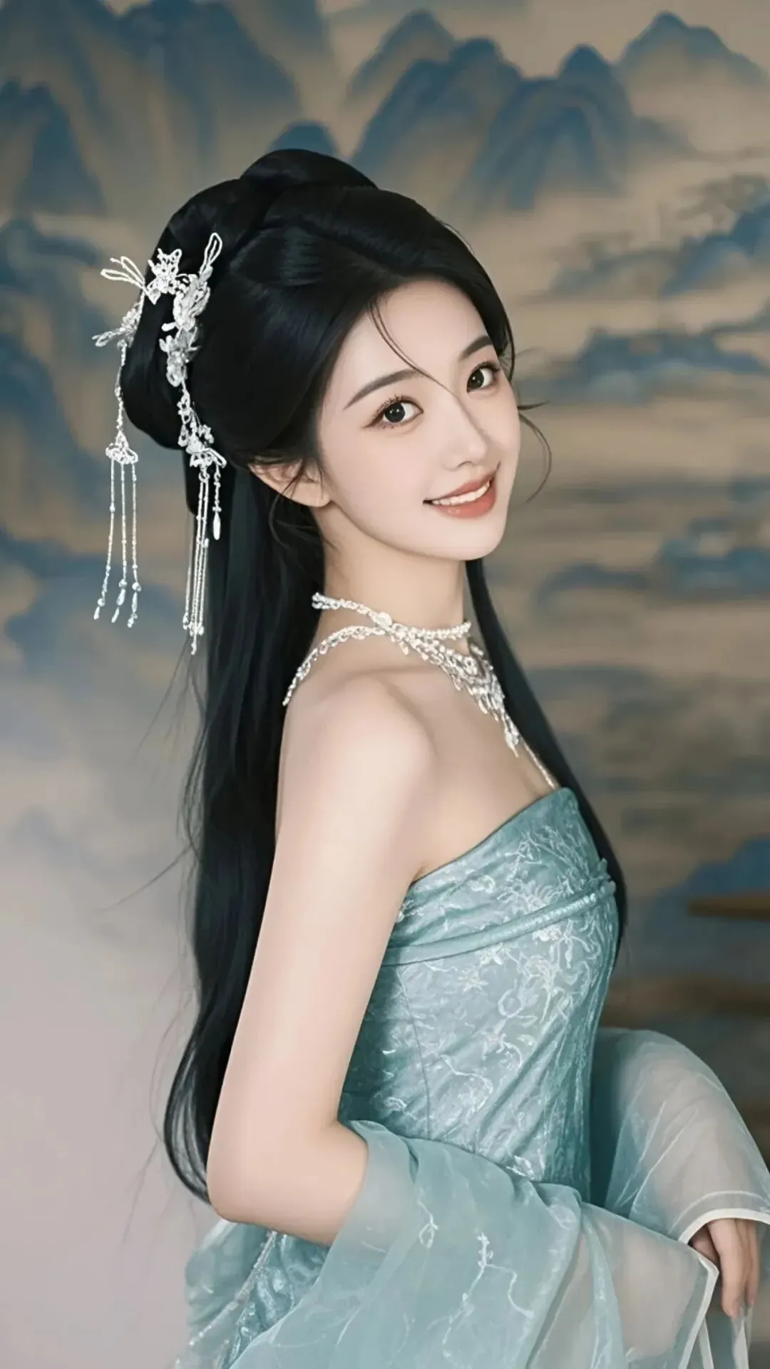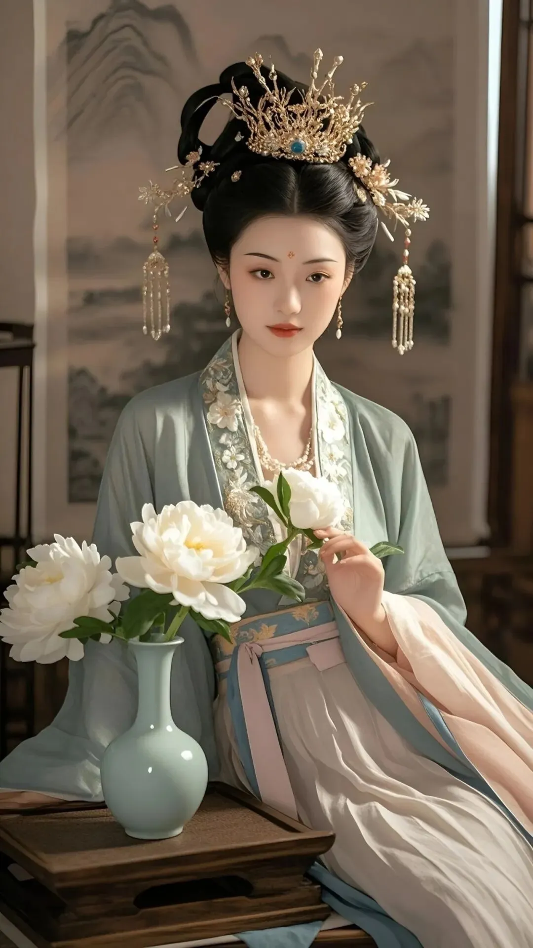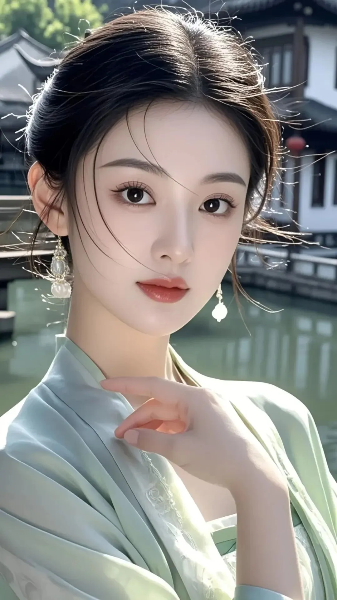 无水印可下载壁纸:云绡裁雾,玉珰垂耳;温婉如卷,低眉藏思