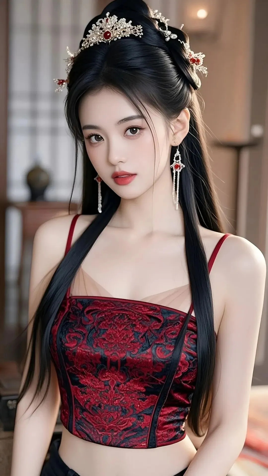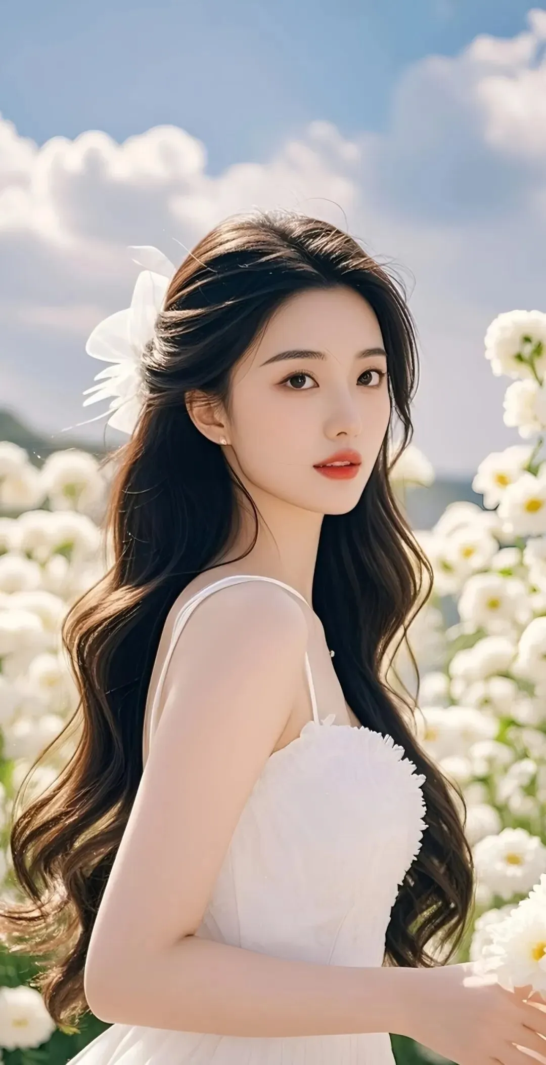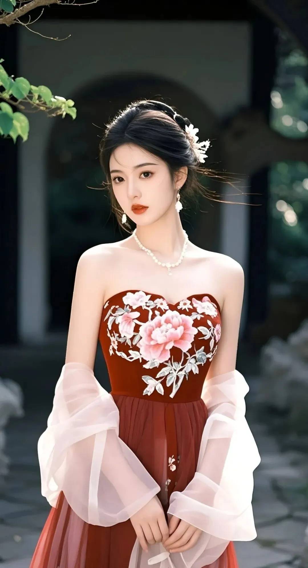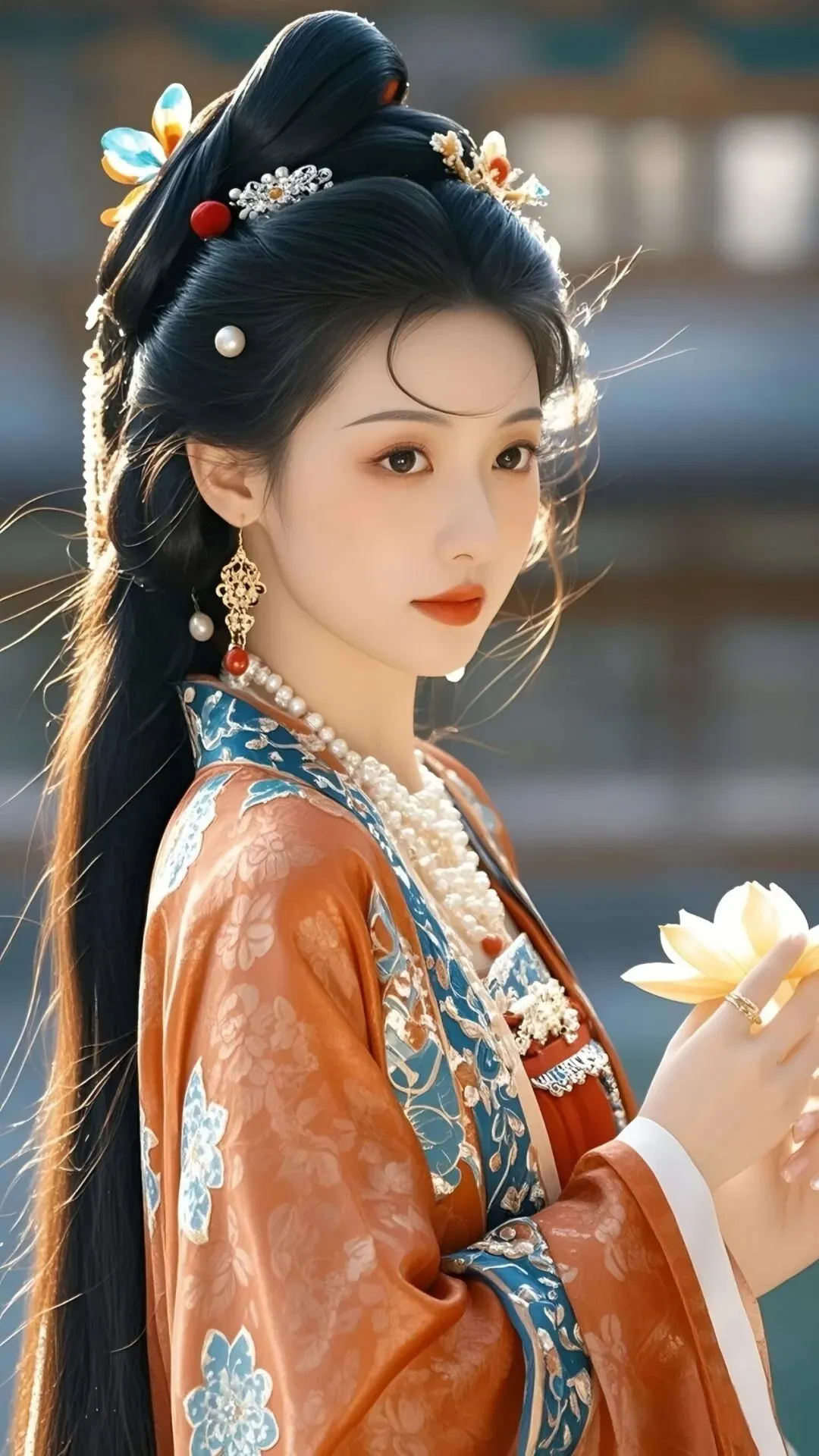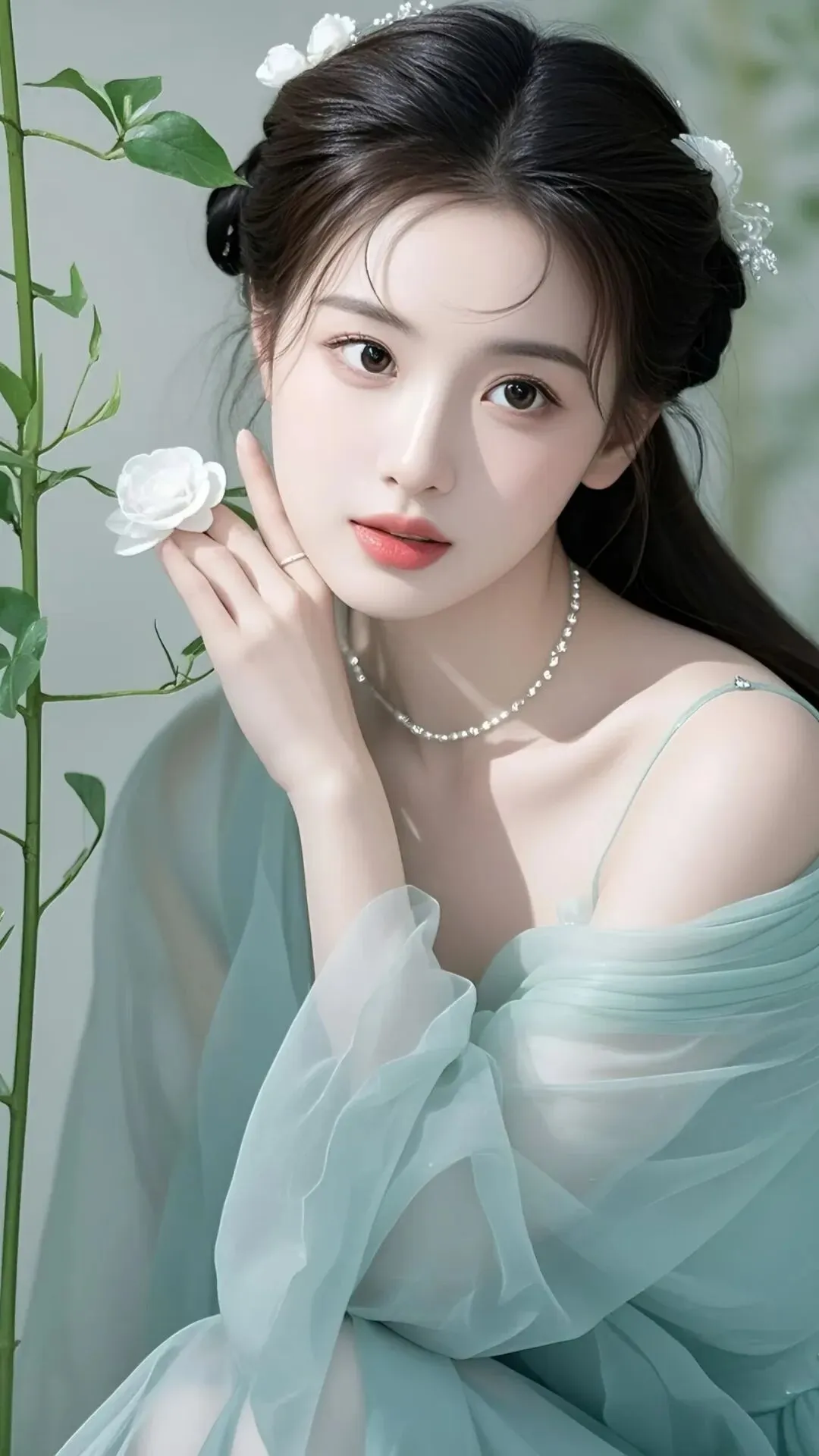 无水印可下载壁纸:云绡裁雾,玉珰垂耳;温婉如卷,低眉藏思