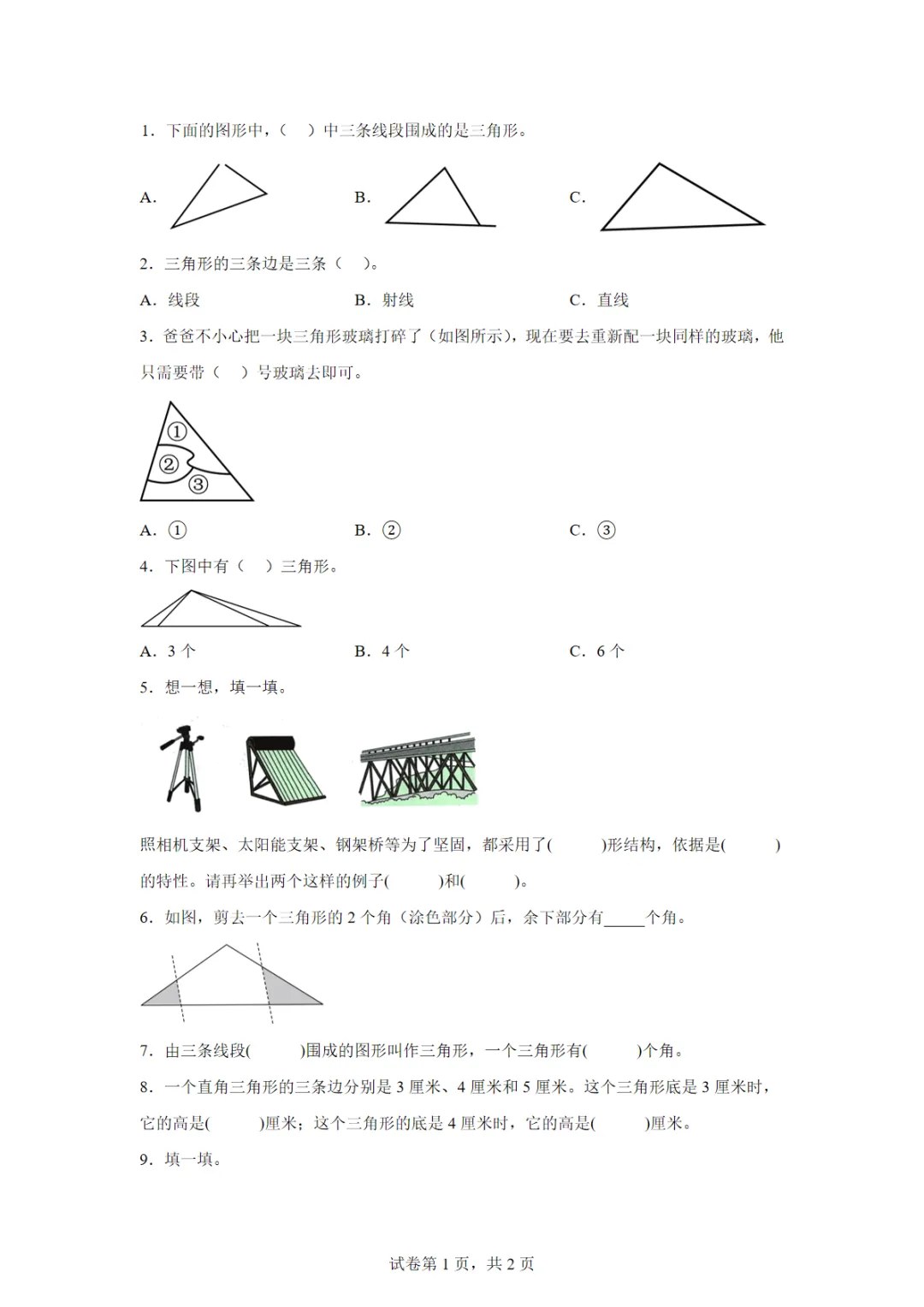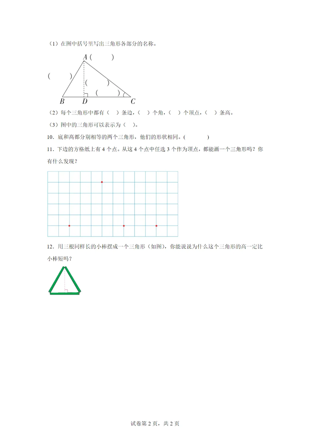 【免费下载】苏教版(2026)四年级下册6.1 三角形的认识 练习卷,可打印