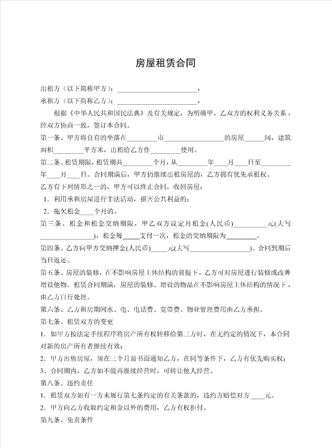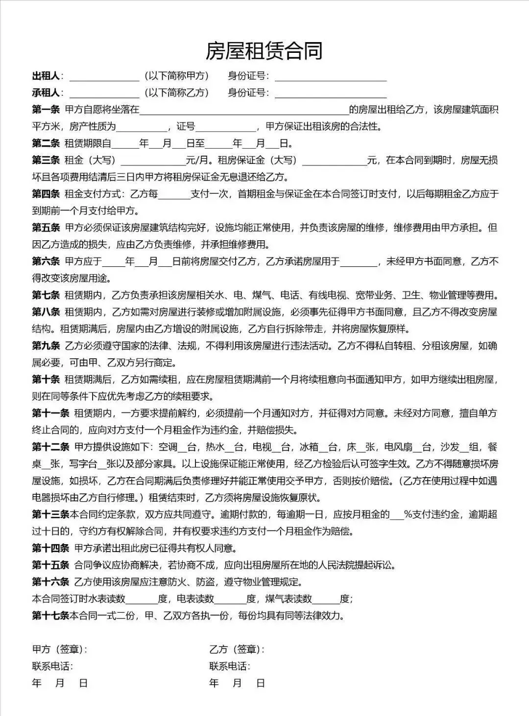 2026年新版《房屋租赁合同模板》(电子版pdf可打印下载)
