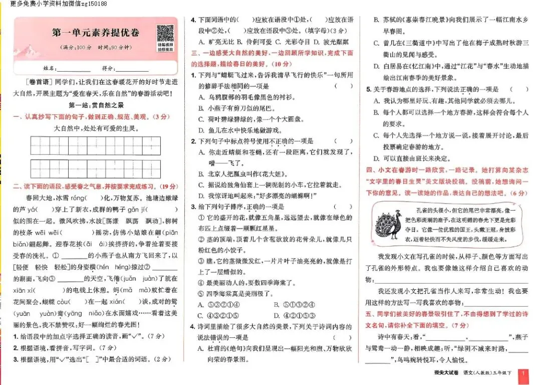小学语文 26春人教版《拔尖大试卷》,可免费下载打印 领取电子版方式 1.关注本公众号 2.长按下图二维码添加林老师,发送关键词:语文大试卷+几年级 3.如二维码失效请查看最新文章 声明 | 本平台图文版权归原作者所有,素材来源于网络,如存在文章、图片、音频等使用不当的情况,请及时与我们联系,我们将及时更正、删除并表示歉意。
