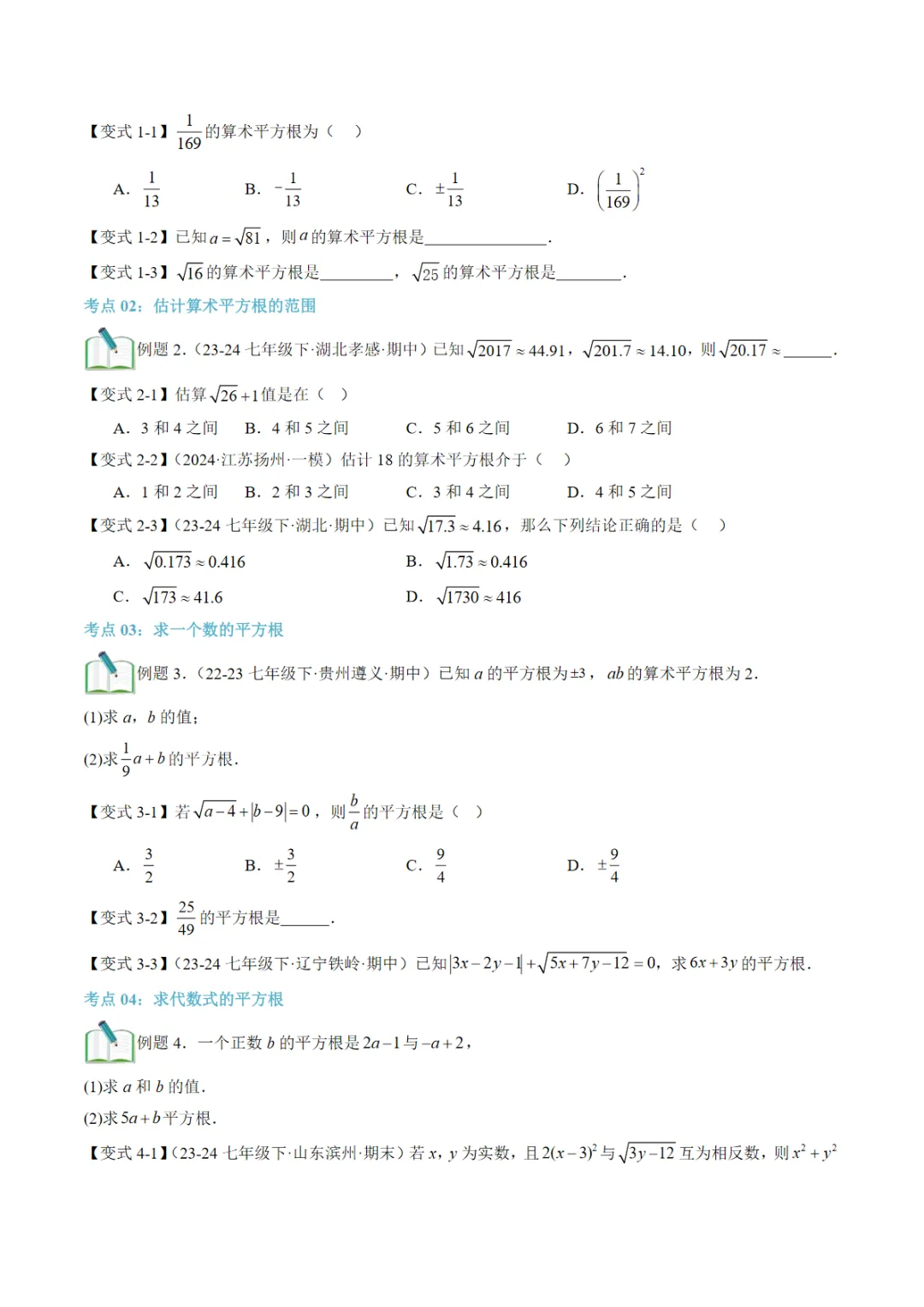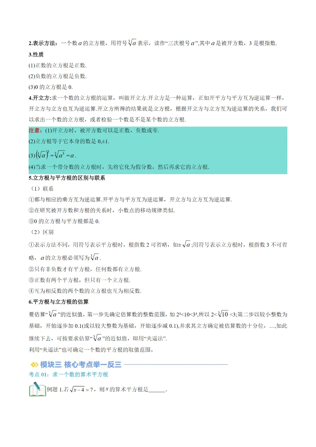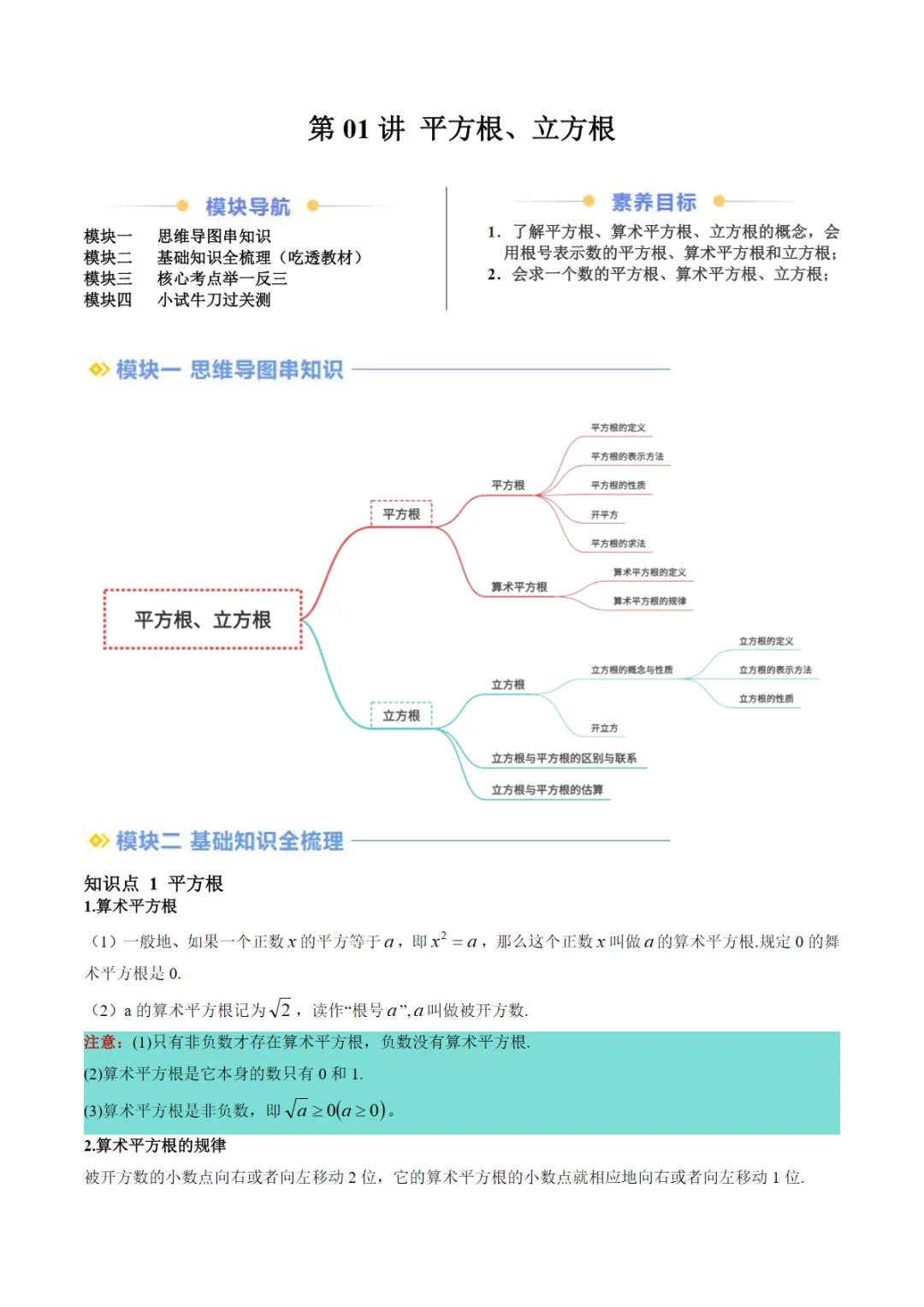 【免费下载】第01讲 平方根、立方根(原卷版)【沪科】七下数学寒假预习,WORD电子版,可编辑,可打印